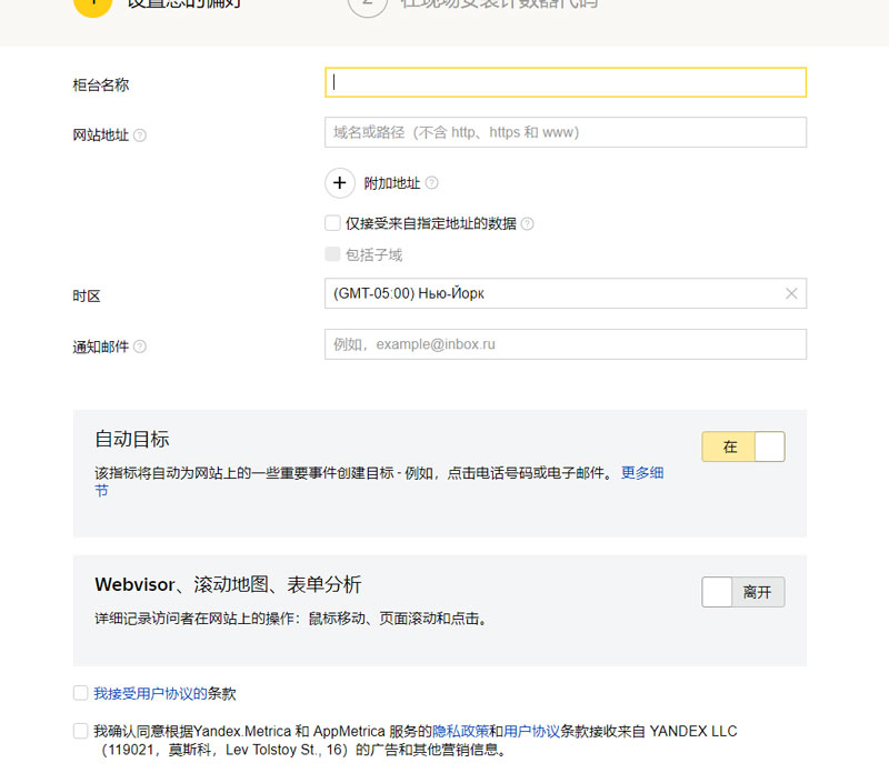注意:您需要把 Yandex.Metrica 代碼放置在每一個內容管理系統中。