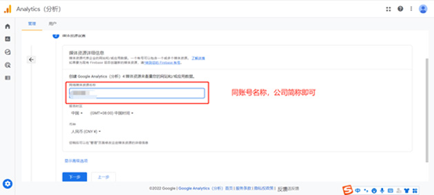3、輸入賬號名稱:在創(chuàng)建賬號時,您需要輸入賬號名稱(中文即可,最少 3 個漢字),并單擊“下一步”。(如下圖所示)