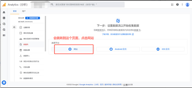 5、跳轉(zhuǎn)頁面,點擊網(wǎng)站:在創(chuàng)建賬號后,您將跳轉(zhuǎn)至一個頁面,在該頁面上,您需要點擊“網(wǎng)站”。(如下圖所示)