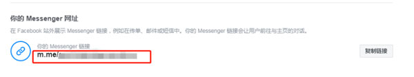 1、將 Messenger 鏈接(m.me/*************)放到郵件、短信、網站鏈接中,用戶點擊鏈接即可與您對話。