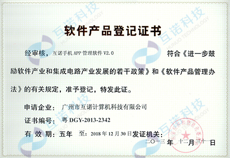 互諾手機(jī)APP管理軟件產(chǎn)品登記證書
