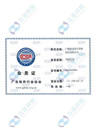 廣東軟件行業(yè)協(xié)會(huì)會(huì)員單位證書