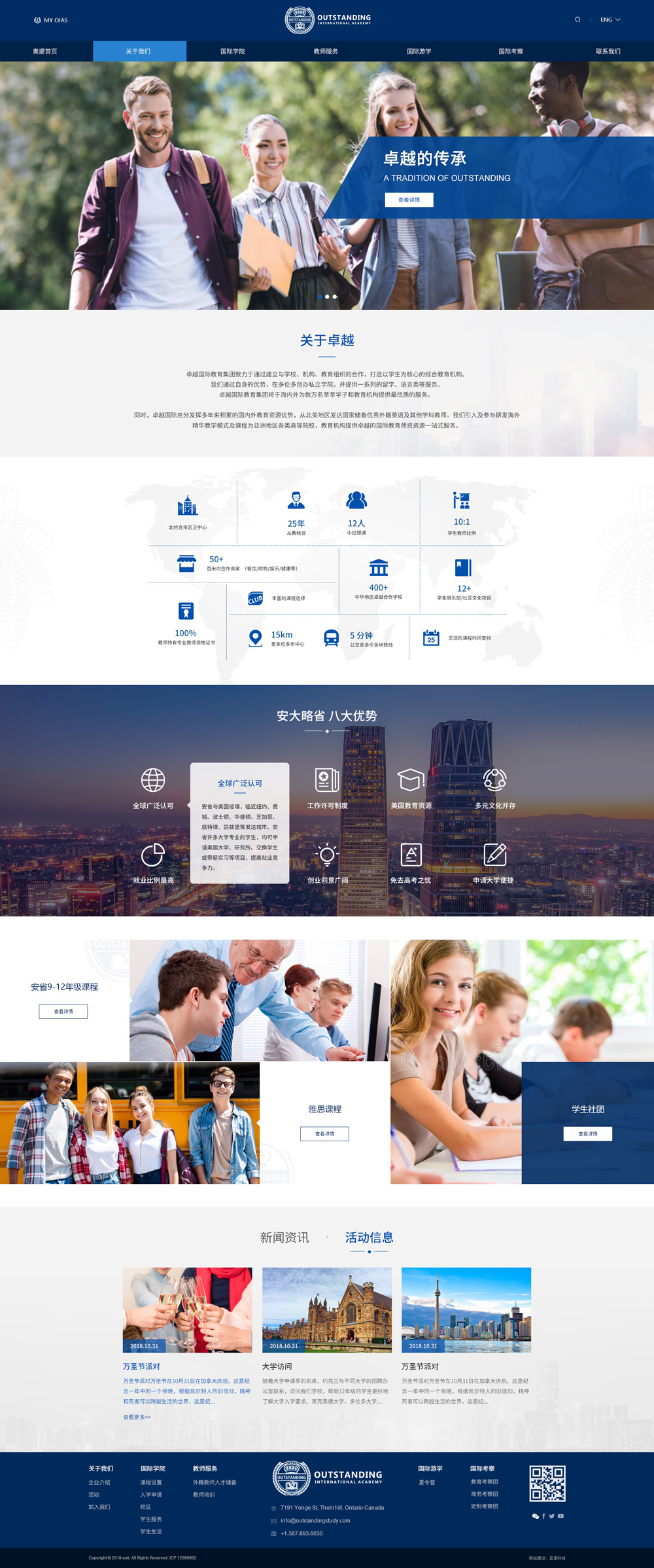卓越教育集團在亞洲地區擁有二十五年的辦學經驗,從中投資并運營中的項目包含卓越英語進修學校,卓越美式早教中心、卓越美式幼兒園、卓越國際幼兒園、卓越國際項目合作部、卓越教育軟件(杭州)有限公司、智云城教育科技有限公司。集團以外語培訓和學前教育為核心,擁有少兒培訓系統、成人教育系統、E-Learning教育系統、教育研發系統、海外留學咨詢系統、國際合作系統等多個發展平臺,是一家集教育培訓、教育研發、圖書音像出版、在線教育、教育軟件研發等于一體的教育集團。現階段,卓越國際教育集團通過自身的優勢,在多倫多創辦寄宿制私立學院,并面向海內外學子和教育機構提供一系列的優質留學、語言類、教育資源類等服務。