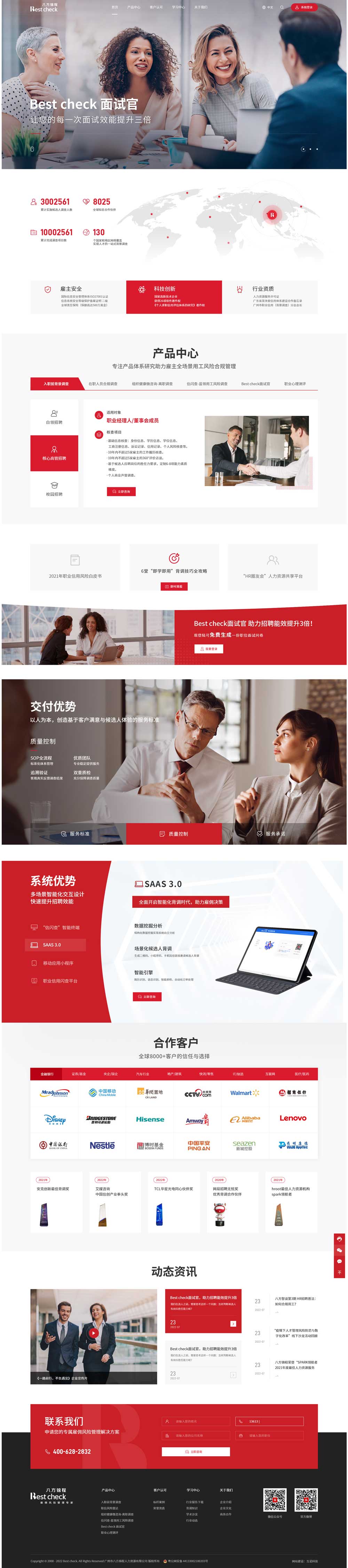 廣州市八方錦程人力資源有限公司成立于2008年,是中國最早成立的專注于企業(yè)雇傭風(fēng)險(xiǎn)管理的背景調(diào)查機(jī)構(gòu), 2019-2020年度廣東省“守合同重信用”企業(yè)。累計(jì)實(shí)施候選人調(diào)查超過300萬人,完成調(diào)查項(xiàng)目交付超過1000萬次,并且擁有8000多家國內(nèi)外知名企業(yè)服務(wù)經(jīng)驗(yàn)。