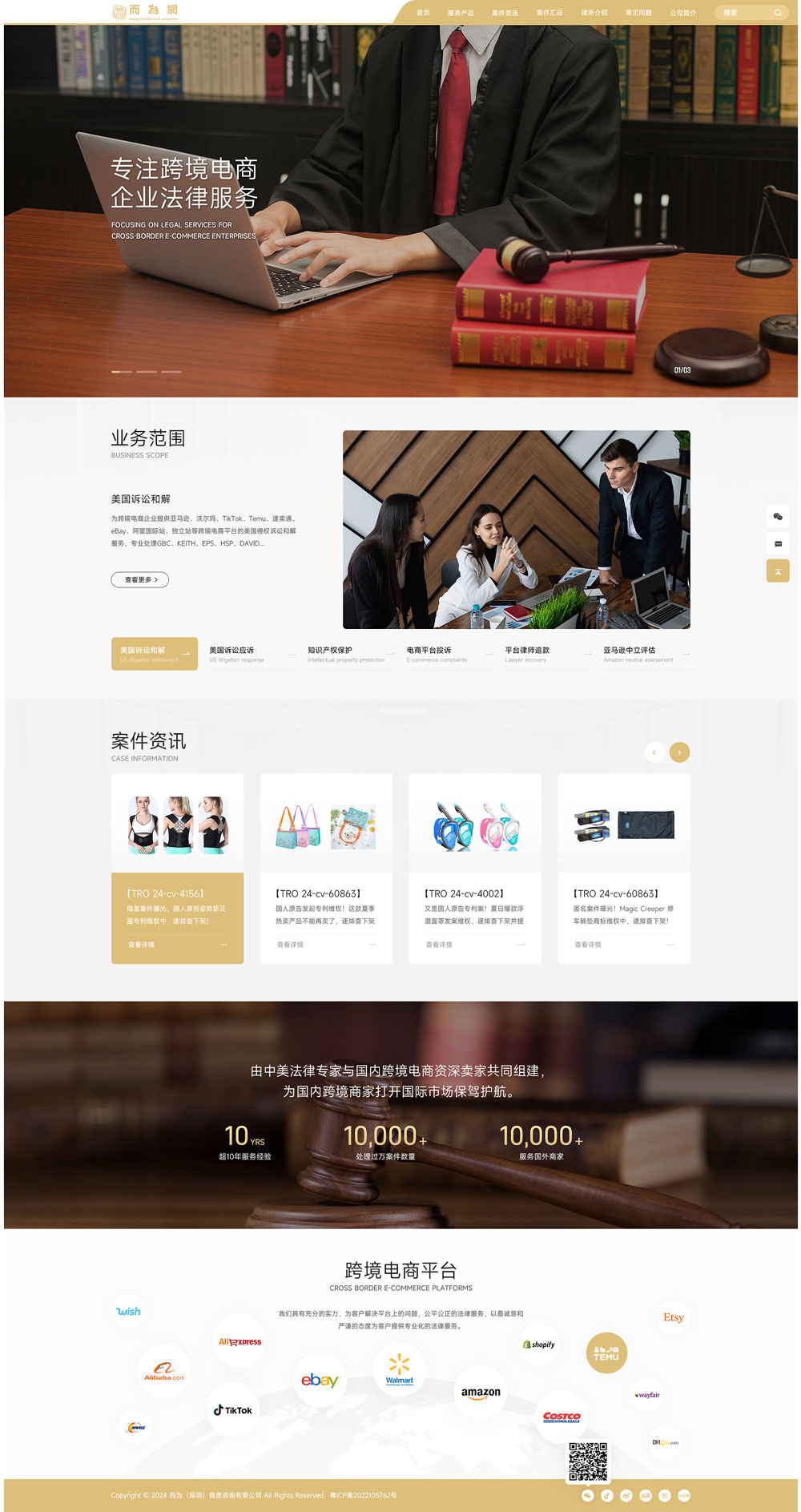 而為網(wǎng)由美國(guó)芝加哥知名律師事務(wù)所的法律專家與國(guó)內(nèi)涉外法律專家、跨境電商資深賣家共同組建。專業(yè)解決國(guó)內(nèi)跨境電商企業(yè)在國(guó)內(nèi)與美國(guó)的法律問題。為客戶提供訴訟和解、訴訟應(yīng)訴、知識(shí)產(chǎn)權(quán)保護(hù)、電商平臺(tái)投訴、亞馬遜中立評(píng)估、律師追款、常年法律顧問以及國(guó)內(nèi)民事訴訟等服務(wù)。國(guó)內(nèi)團(tuán)隊(duì)人數(shù)20人,主要負(fù)責(zé)推廣、業(yè)務(wù)接待與業(yè)務(wù)跟進(jìn)。成員分布在深圳、廣州等地區(qū)。美國(guó)芝加哥律師團(tuán)隊(duì)36人,負(fù)責(zé)美國(guó)法律事務(wù)。而為網(wǎng),為中國(guó)跨境商家打開國(guó)際市場(chǎng)保駕護(hù)航。