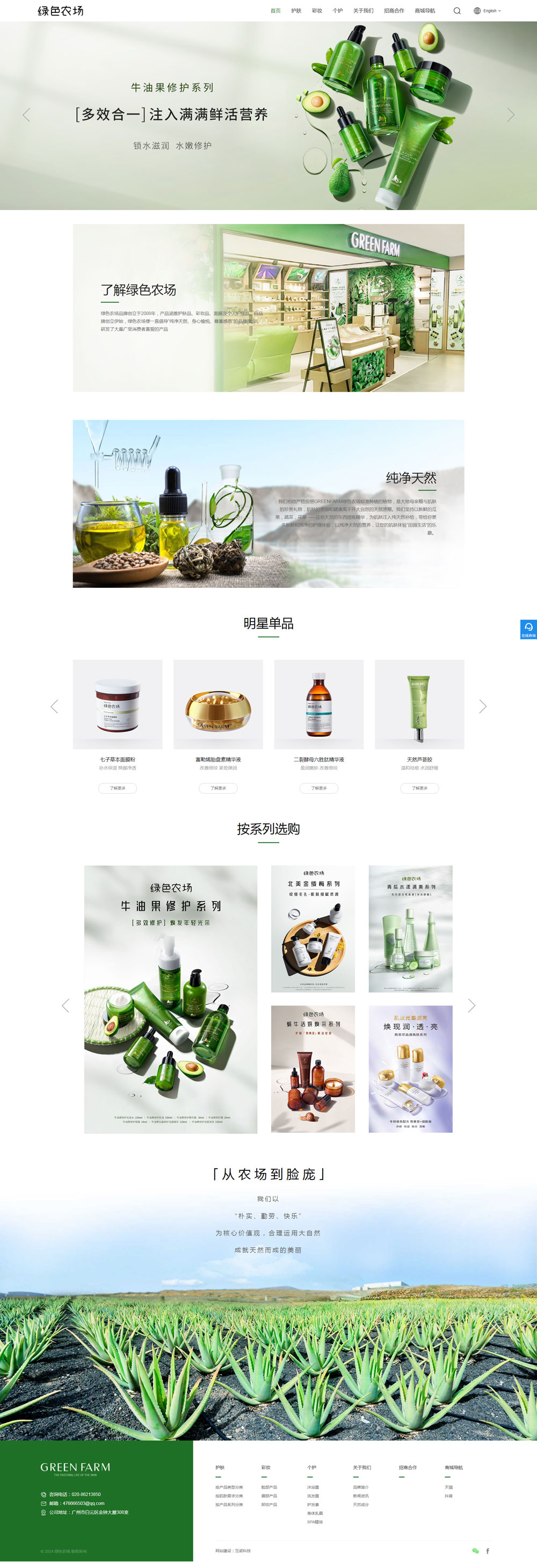 綠色農場品牌創立于2008年,產品涵蓋護膚品、彩妝品、面膜及個人護理品。自品牌創立伊始,綠色農場便一直倡導“純凈天然、身心愉悅、尊重感恩”的品牌理念,研發了大量廣受消費者喜愛的產品。