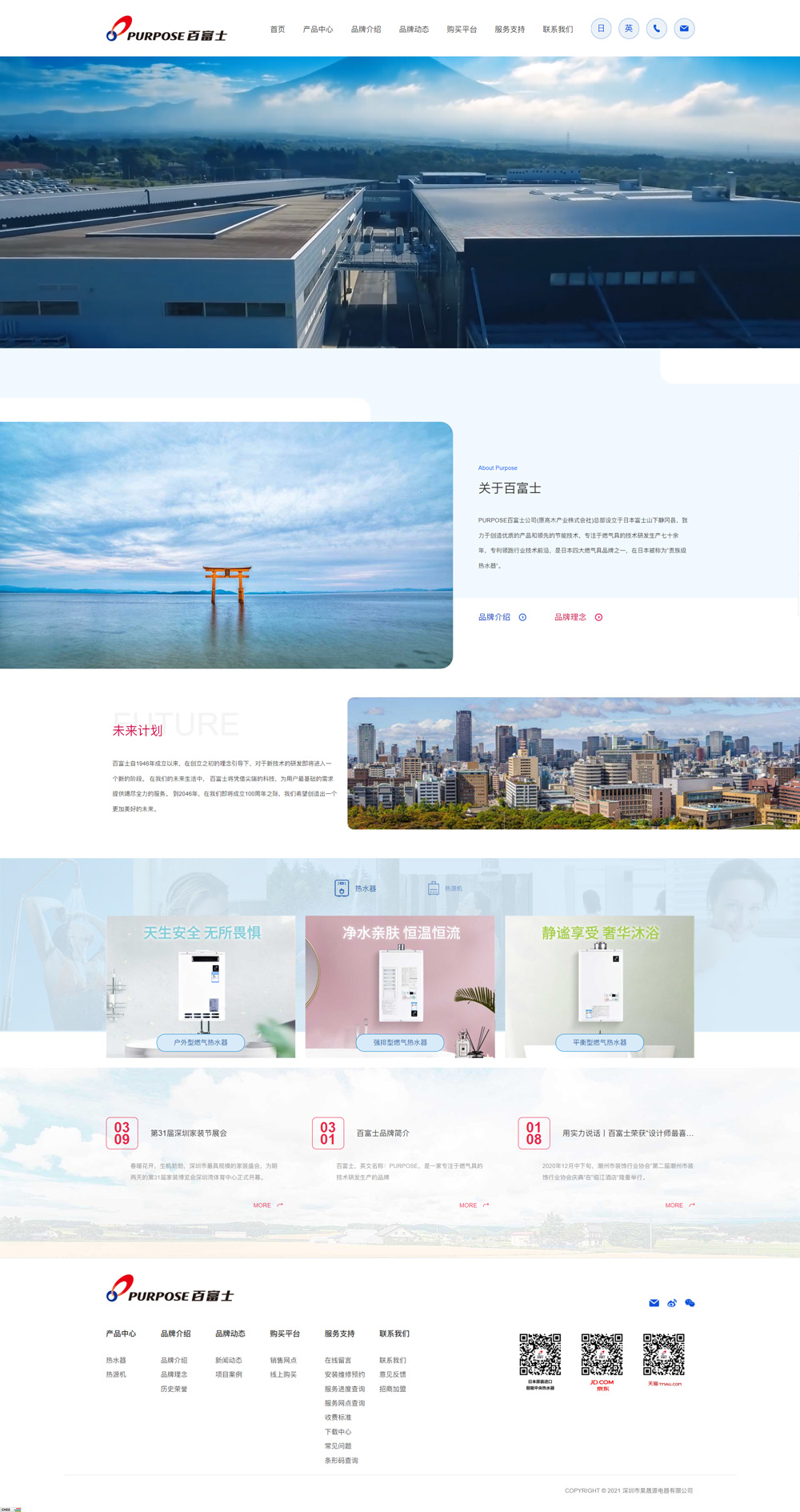 PURPOSE百富士指定深圳昊晟源公司作為中國唯一的運營服務商,專注于高端生活熱水領域,致力于為追求高品質生活的人們提供優質的產品和服務,打造健康環保有品位的生活方式,讓千萬家庭享受更加美好的生活,在終端渠道建設、代理商的管理、售后服務等方面形成了自己的核心優勢。