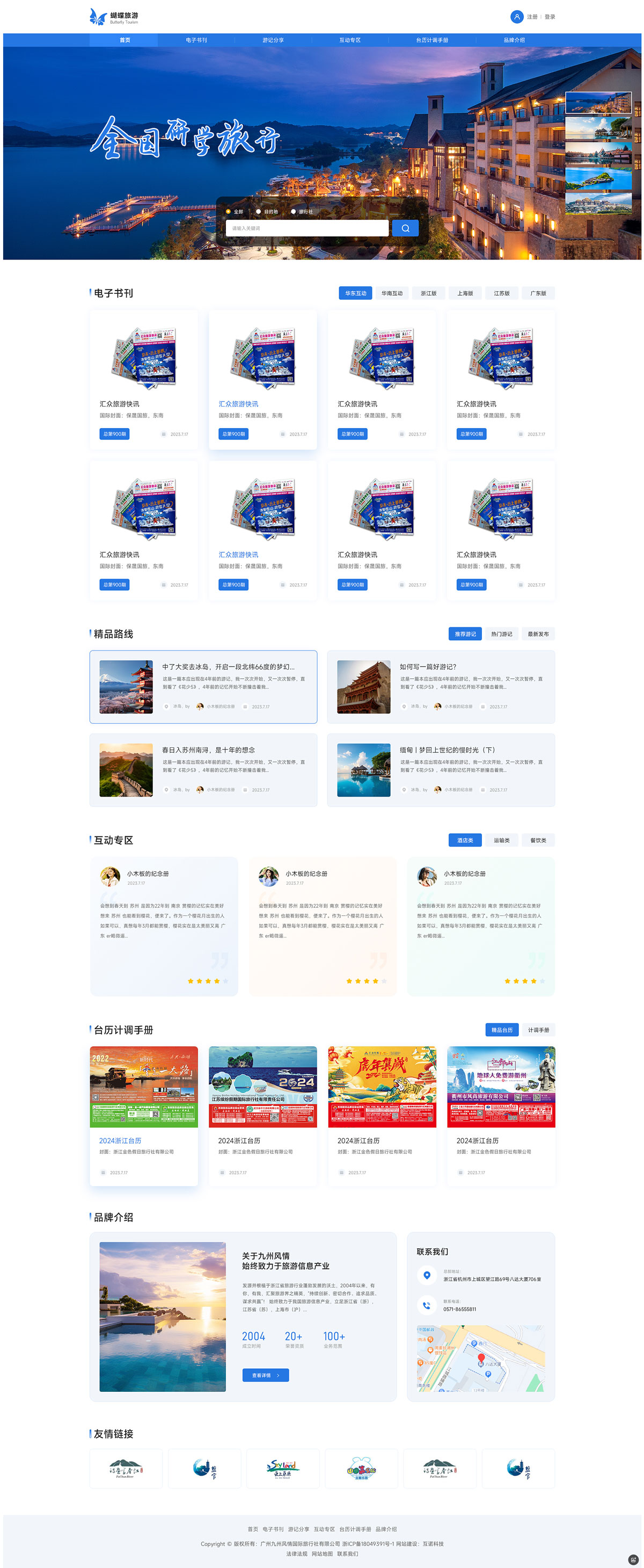 九州風情自 2004 年起扎根浙江旅游行業,匯聚精英,秉持創新合作理念,深耕旅游信息產業。業務覆蓋浙、蘇、滬、皖、粵等省市,影響輻射全國乃至全球。歷經 17 年發展,已成為華東和華南旅游同行信息交流的重要平臺,被贊為 “計調操作必讀手冊” 。主要經營旅游業務,包括但不限于為游客提供旅游線路規劃、交通票務預訂、酒店住宿安排、導游服務等,涵蓋境內旅游和出境旅游等多個領域。