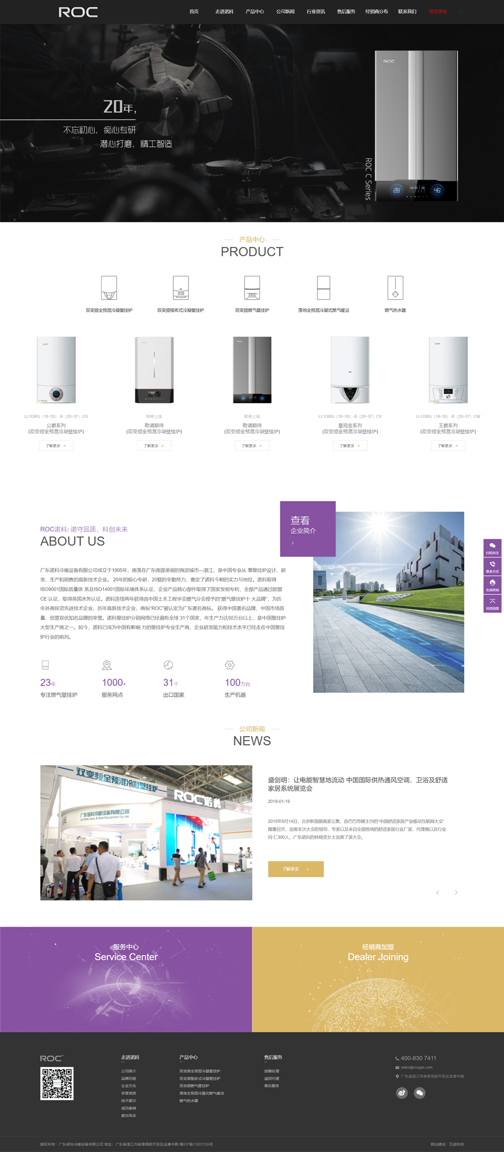 廣東諾科冷暖設(shè)備有限公司成立于1995年,座落在廣東南部美麗的海濱城市—湛江,是中國(guó)專業(yè)從 事壁掛爐設(shè)計(jì)、研發(fā)、生產(chǎn)和銷售的高新技術(shù)企業(yè)。 20年的癡心專研,20載的辛勤努力,奠定了諾科今朝的實(shí)力與地位。諾科取得ISO9001國(guó)際質(zhì)量體 系及ISO14001國(guó)際環(huán)境體系認(rèn)證,企業(yè)產(chǎn)品核心部件取得了國(guó)家發(fā)明專利,全部產(chǎn)品通過(guò)歐盟CE 認(rèn)證,取得英國(guó)水務(wù)認(rèn)證。諾科連續(xù)兩年獲得由中國(guó)土木工程學(xué)會(huì)燃?xì)夥謺?huì)授予的“燃?xì)獗趻鞝t十 大品牌”,為歷年外商投資先進(jìn)技術(shù)企業(yè),歷年高新技術(shù)企業(yè),商標(biāo)“ROC”被認(rèn)定為廣東著名商標(biāo)。 獲得中國(guó)著名品牌、中國(guó)市場(chǎng)質(zhì)量、信譽(yù)雙優(yōu)知名品牌的榮譽(yù)。諾科壁掛爐分銷網(wǎng)絡(luò)已經(jīng)遍布全球 31個(gè)國(guó)家,年生產(chǎn)力達(dá)50萬(wàn)臺(tái)以上,是中國(guó)壁掛爐大型生產(chǎn)商之一。如今,諾科已成為中國(guó)有影響 力的壁掛爐專業(yè)生產(chǎn)商,企業(yè)研發(fā)能力和技術(shù)水平已經(jīng)走在中國(guó)壁掛爐行業(yè)的前列。