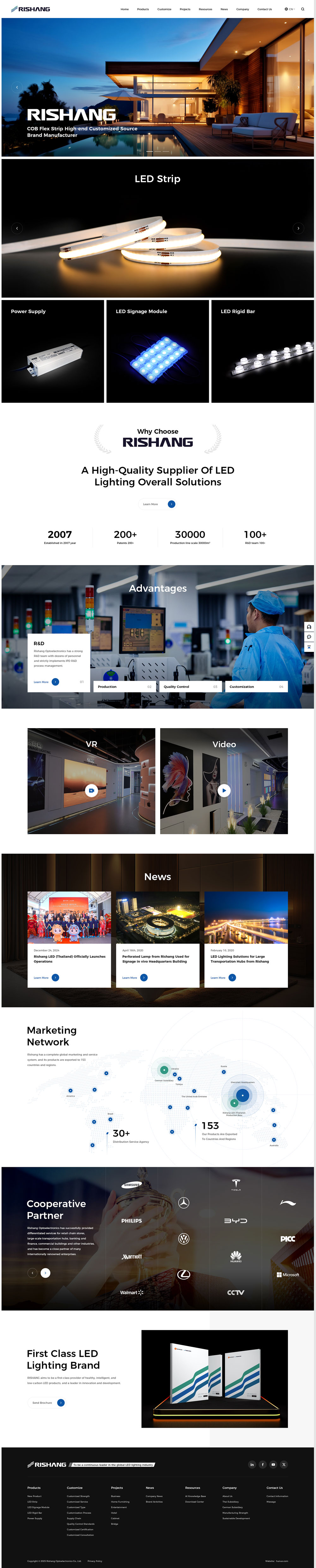 作為專注于 LED 照明領域的領軍者,深圳日上光電有限公司成立于 2007 年,總部位于深圳,是一家已成功上市的國家級高新技術企業。多年來,公司聚焦 LED 標識照明、燈帶照明及教育照明三大核心業務,以 “以客戶為中心、以創新為驅動” 為理念,為全球客戶提供高品質服務。其研發實力尤為突出,100 余名高級研發人員組成的專業團隊累計拿下 200 余項國內外專利;作為國內首家擁有照明環境監測測試中心的企業,它還手握德國 TüV 授權實驗室資質,產品全面通過 3C、CQC、CE 等國內外權威認證,更牽頭起草多項行業標準,盡顯領軍風范。而這份亮眼的企業實力,也需要一個專業的線上平臺來全方位呈現 —— 正是基于這一需求,互諾科技成為了日上光電的重要合作伙伴,為其量身打造了契合品牌定位與業務需求的官方網站。