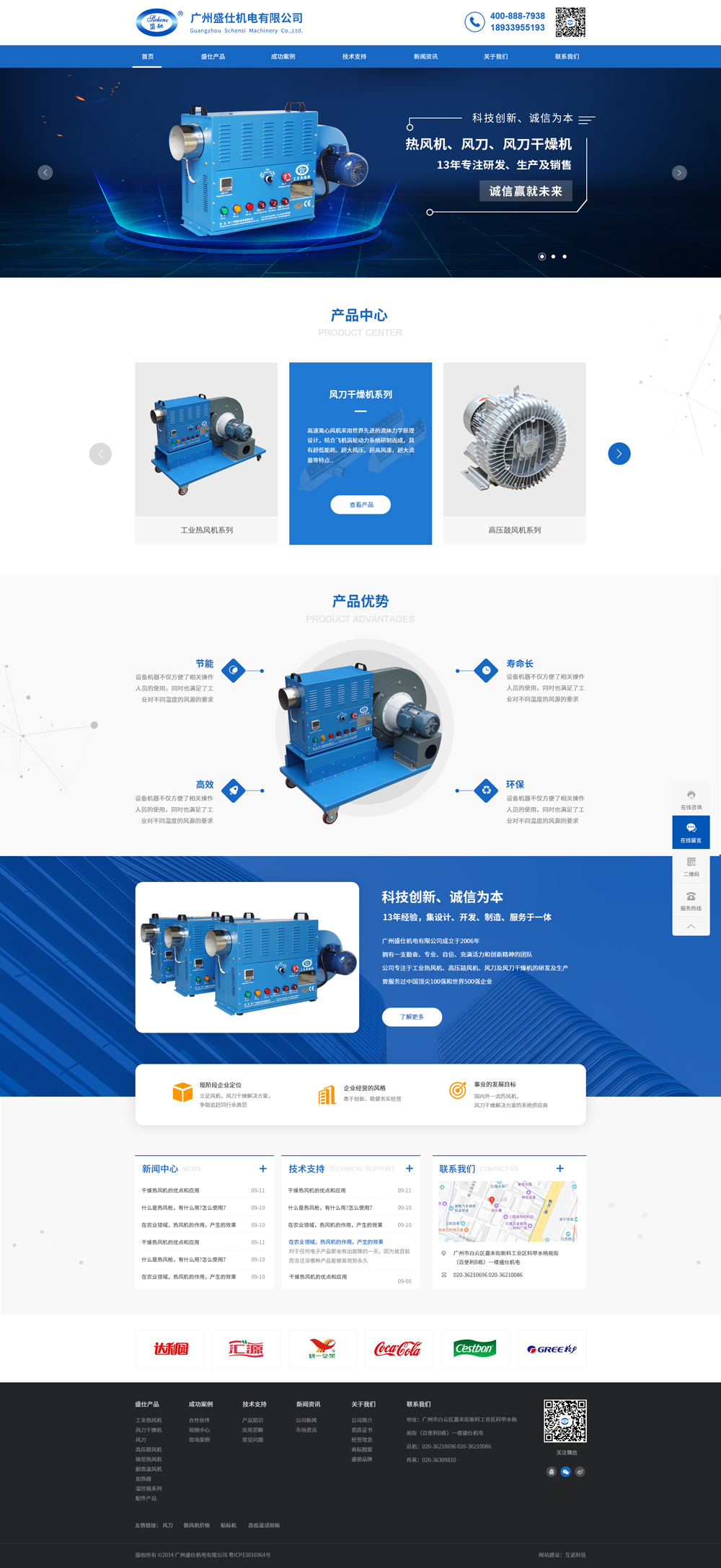 廣州盛仕機(jī)電有限公司專注于風(fēng)刀、風(fēng)刀干燥機(jī)、電熱式工業(yè)熱風(fēng)機(jī)及高壓鼓風(fēng)機(jī)的研發(fā)、生產(chǎn)及銷售。曾服務(wù)過中國頂尖100強(qiáng)和世界500強(qiáng)企業(yè)。公司擁有專業(yè)的研發(fā)人才,集設(shè)計、開 發(fā)、制造、服務(wù)于一體;生產(chǎn)設(shè)備先進(jìn)齊全,產(chǎn)品質(zhì)量安全可靠。公司通過IS09001:2015質(zhì) 量管理體系認(rèn)證、產(chǎn)品通過歐盟CE認(rèn)證。多年來,盛馳品牌一直是風(fēng)刀、風(fēng)刀干機(jī)、電熱式工 業(yè)熱風(fēng)機(jī)及高壓鼓風(fēng)機(jī)創(chuàng)新的先驅(qū)者。以扎實(shí)的技術(shù)水平、過硬的質(zhì)量標(biāo)準(zhǔn)、推陳出新的創(chuàng)新 能力、以及一系列設(shè)備組合成為同行的楷模