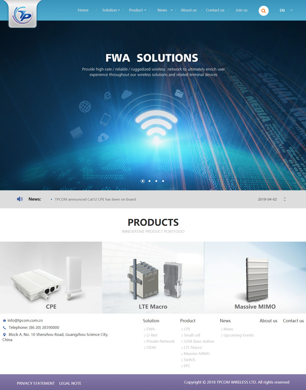 TPcom是全球領(lǐng)先的無(wú)線(xiàn)通信與信息解決方案及服務(wù)提供商。TPcom聚焦于無(wú)線(xiàn)通信領(lǐng)域技術(shù)的持續(xù)創(chuàng)新,為客戶(hù)提供端到端無(wú)線(xiàn)網(wǎng)絡(luò)整體解決方案和服務(wù)。