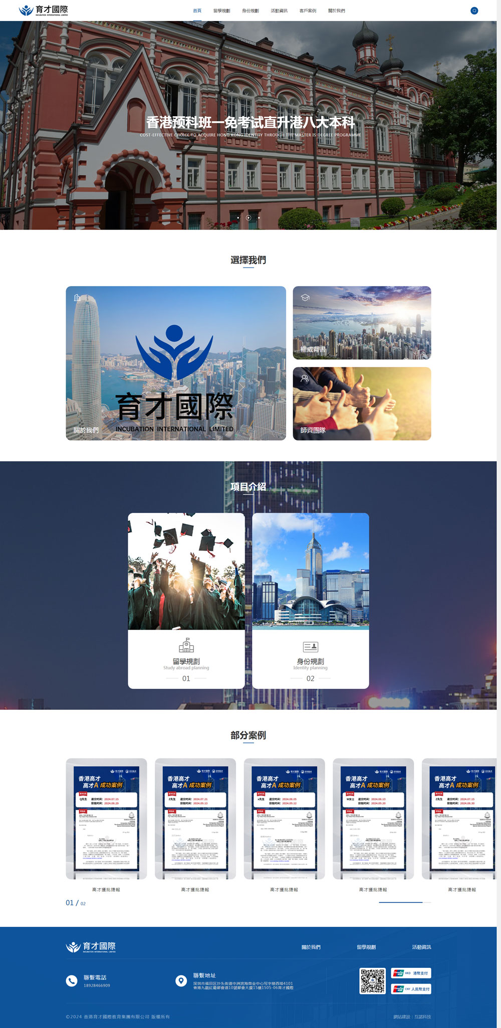 育才國際:全名香港育才國際教育集團(Incubation International Limited),2015年於香港成立,總部位於香港九龍紅磡都會道10號都會大廈,是綜合性教育集團。 現已分別在深圳、杭州、山東、內蒙古等多座都市建立分公司,業務覆蓋全國50多個都市,團隊近500人。 公司業務主要涉及身份規劃、教育兩大行業領域。