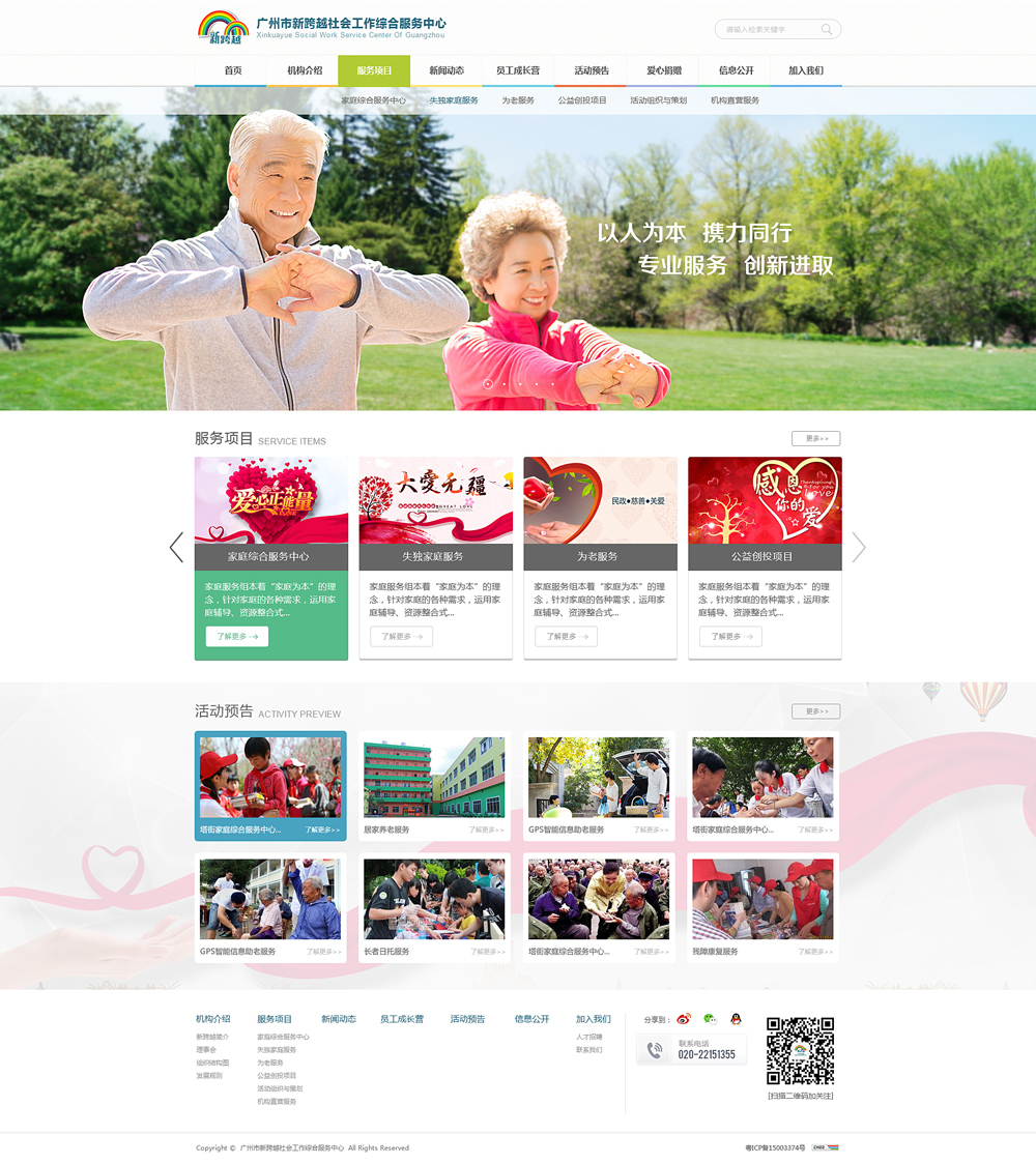 新跨越服務主要包括家庭綜合服務中心、失獨家庭服務、智助助老、居家養老、日間托老、公益創投、殘疾人就業幫扶、活動組織與策劃等,歷經六年的發展和積累,新跨越機構已經在為老、助殘、幫困等多種社區服務和社區資源整合中展現出專業、高效、創新的實干能力,為和諧穩定的社會發展貢獻著一己之力。