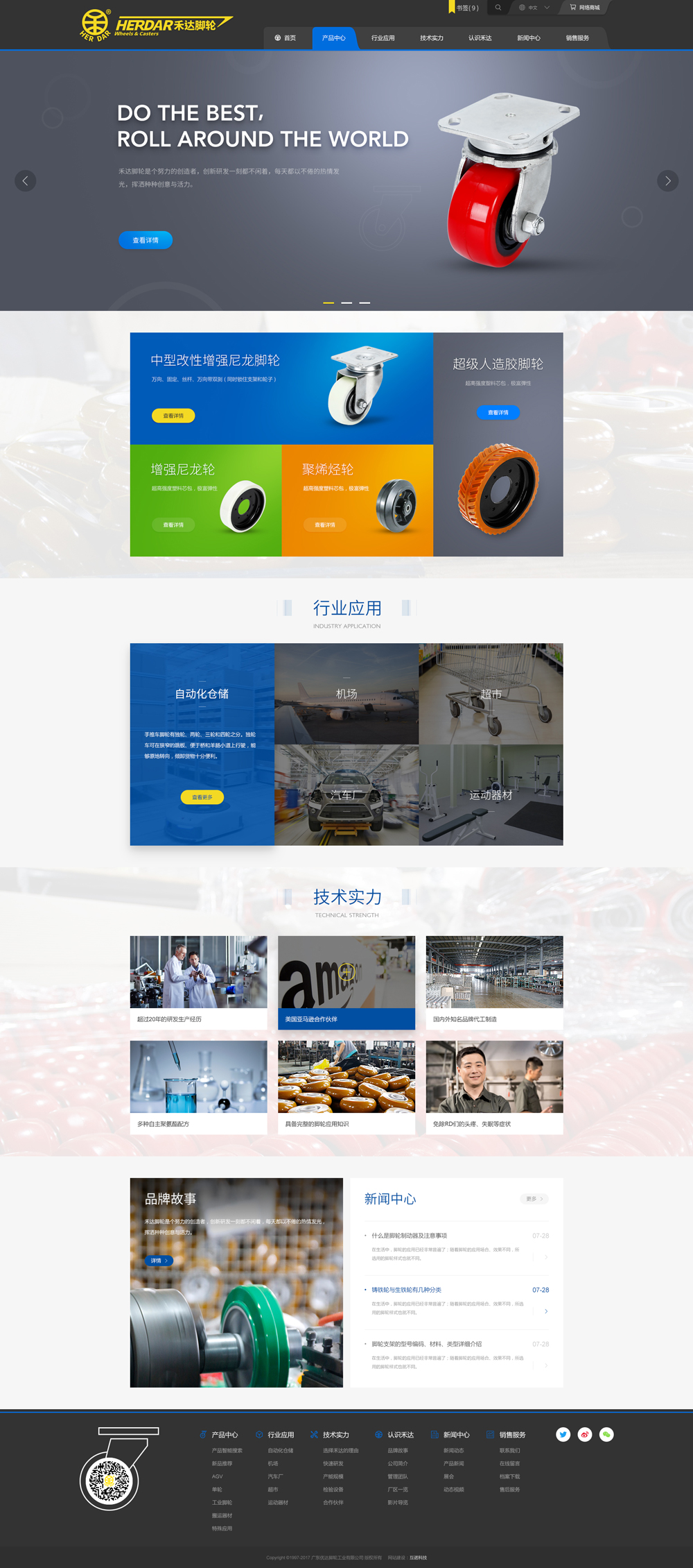 禾達腳輪,1982年,禾達腳輪的前身禾達膠業在臺灣臺南誕生,在這里累積相當的技術實力和業界信譽,陪伴全世界的物流工業一起突破成長。 1991年,為了擴大產能,我們到了廣東省廣州市成立了廣州優利腳輪工業,奠定在腳輪界的基礎。 互諾科技公司成立為2005年,始終致力于在信息技術領域發展,是企業網絡服務的推薦品牌。互諾客戶群主要集中在中國大陸及港、澳、臺等地區。互諾科技憑借創新的網站策劃理念,精湛的網站制作技術,以及豐富的互聯網營銷經驗,2005年至今已擁有客戶20000多。 用戶經過長時間的咨詢及比較,除了朋友的大力的推薦,互諾還提供眾多的成功案例,大大增加了合作的信心,最終在眾多網站建設公司中選擇了互諾科技的網站建設服務。