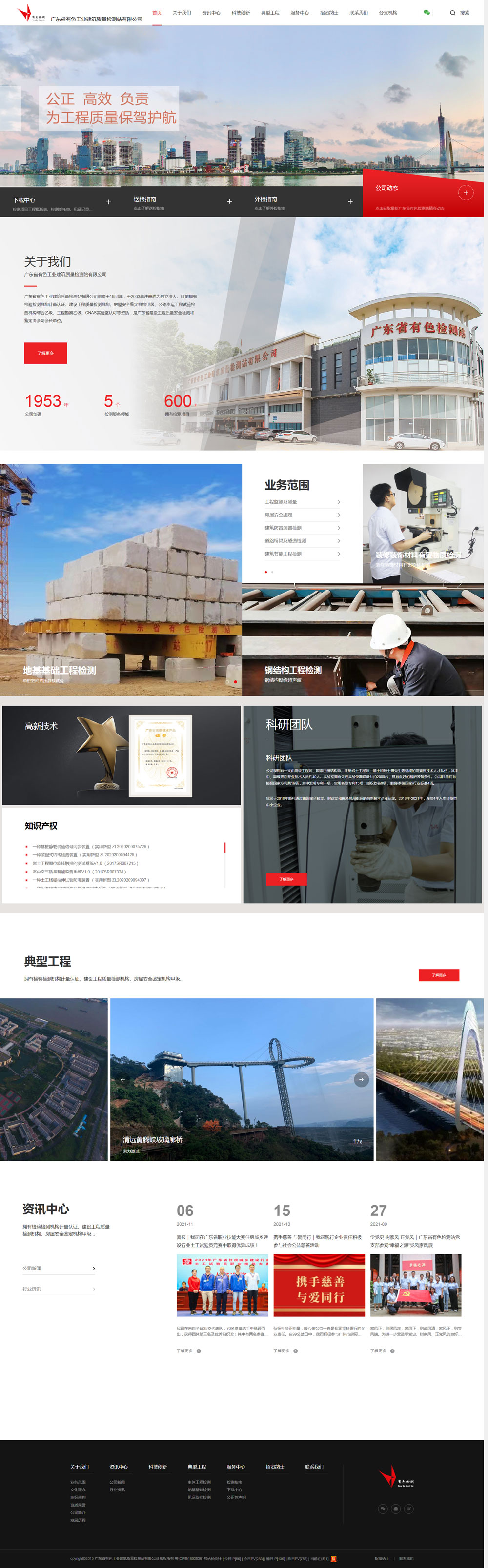 廣東省有色工業建筑質量檢測站有限公司創建于1953年,于2003年注冊成為獨立法人。目前擁有檢驗檢測機構計量認證、建設工程質量檢測機構、房屋安全鑒定機構甲級、公路水運工程試驗檢測機構綜合乙級、工程勘察乙級、CNAS實驗室認可等資質,是廣東省建設工程質量安全檢測和鑒定協會副會長單位。