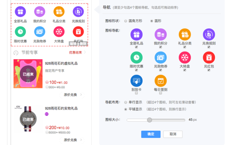 不管你是小白,還是資深設計,你都可擁有個性化的積分商城首頁。商城導航、分類樣式、禮品詳情,你還是可以做主~