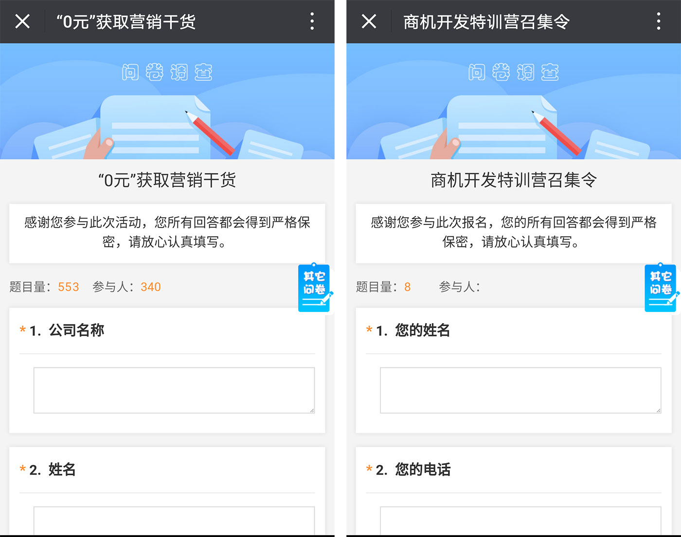 問卷調查——收集用戶意見,提供決策依據,同時增加品牌曝光率和知名度;