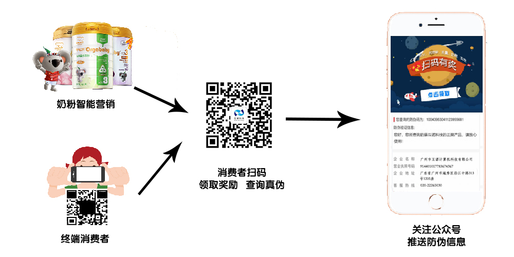 以掃碼送紅包的方式,刺激終端掃碼,提高掃碼率,產品防偽查詢數據系統上傳統計;