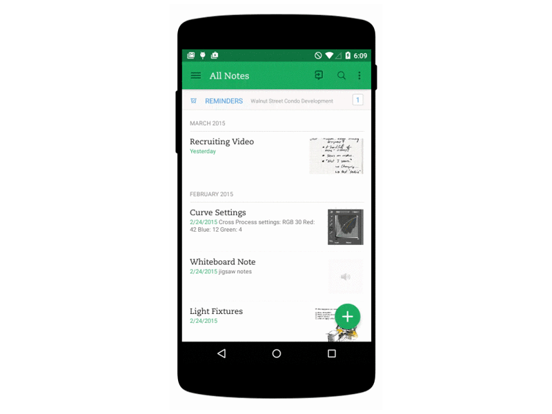 Evernote 的開發團隊無疑是仔細考慮過移動端的使用場景,所以充分利用了移動端設備功能,讓用戶采用最快速有效的方法來保存想法(文本筆記,拍照,設置提醒)。