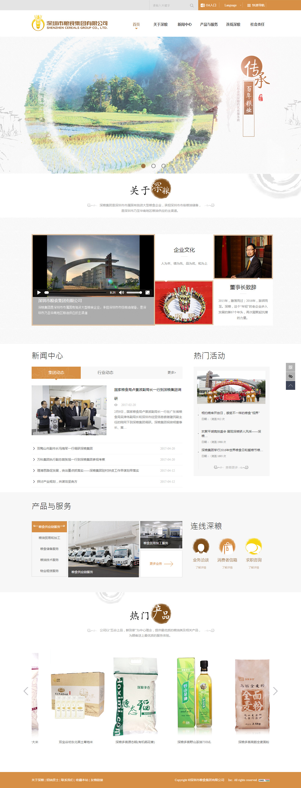 深糧集團是深圳市市屬國有獨資大型糧食企業,是深圳市的“米袋子”,受政府委托,承擔我市市級地方糧食儲備,同時負責駐港、駐深部隊的軍糧供應任務。深糧集團前身是寶安縣糧食局,深圳特區成立后沿革為深圳市糧食局。1982年實行政企分開,改為企業建制。1984年率先在全國進行糧食流通體制改革。1998年經公司制改造,更名為深圳市糧食集團有限公司。集團成功創立了“深糧多喜”、“多喜米”、“谷之香”、“君子蘭”、“紅荔”等品牌,被深圳市政府授予“放心糧油”稱號,年糧食購銷量130萬噸,約占深圳口糧市場份額的33%。