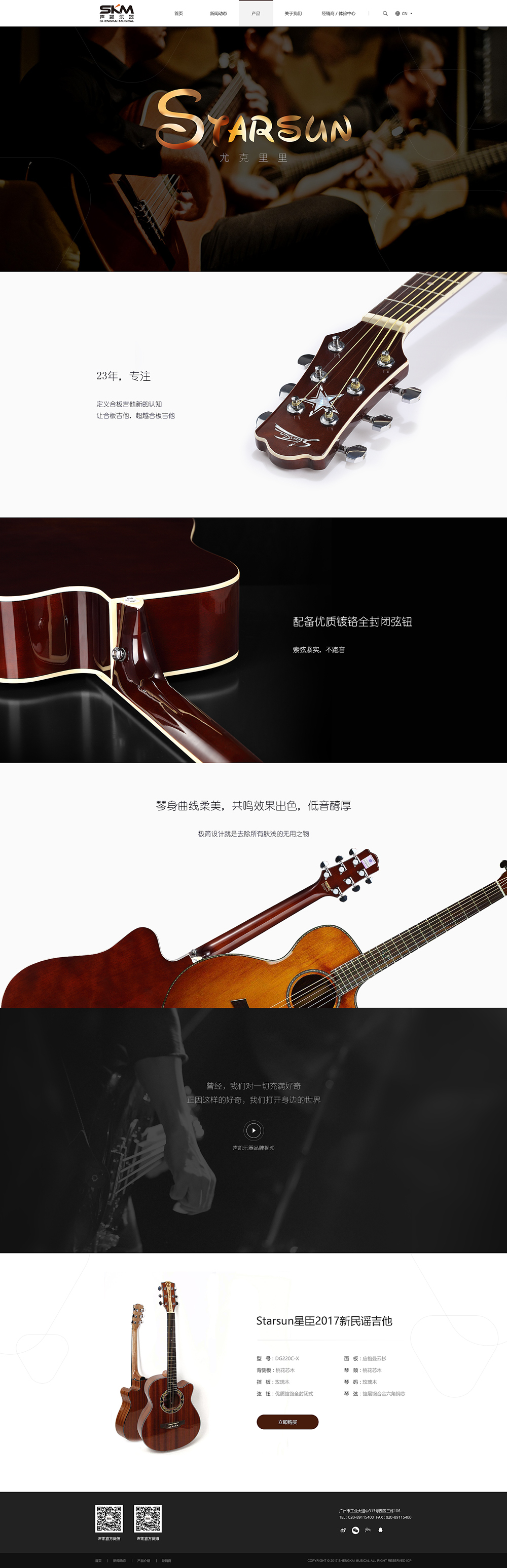 聲凱樂器有限公司創(chuàng)立于1993年,是中國樂器行業(yè)大規(guī)模吉他、曼陀鈴、提琴等弦樂器的制造商之一,擁有集研、產(chǎn)、銷于一體的大型民營企業(yè)。聲凱樂器經(jīng)過近二十四年的發(fā)展,產(chǎn)品遠(yuǎn)銷歐美、日本、東南亞等世界各地,在中國乃至全世界的吉他市場占據(jù)著重要的位置。旗下的“星臣”吉他工藝精湛、品質(zhì)優(yōu)良近十余年一直保持“廣東省名牌產(chǎn)品”的稱號,成為中國優(yōu)秀的吉他民族品牌之一。