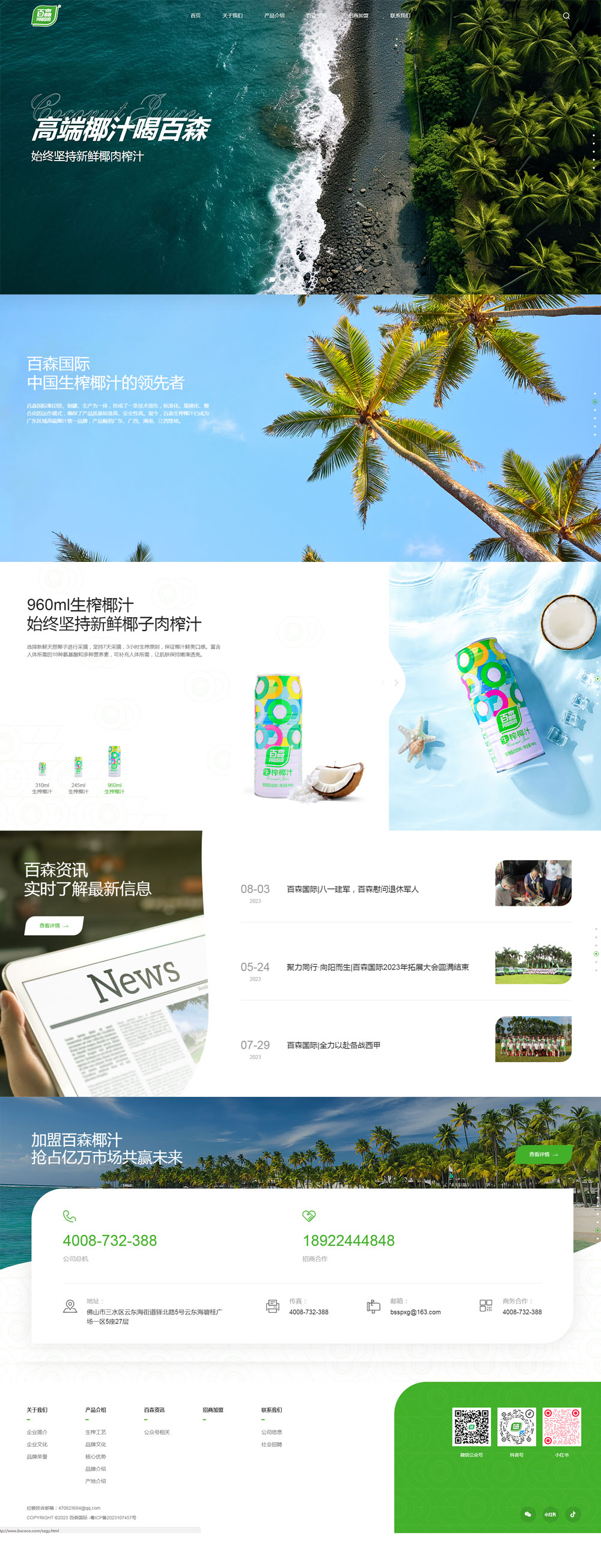 百森國際視消費者利益為核心,塑造“7天采摘,3小生榨”的生榨椰汁行業標準,逐步將品牌推上生榨椰汁的領導者,成為純植物新鮮營養領域的健康專家,讓消費者喝到新鮮、營養、健康的植物蛋白飲品。