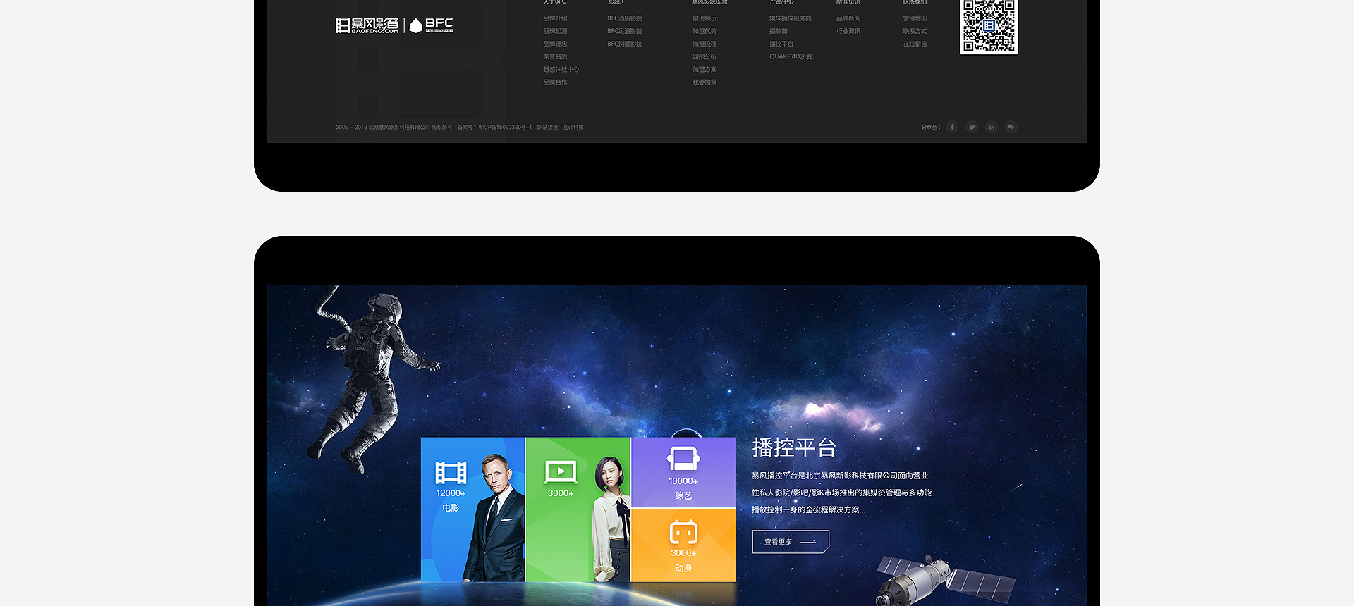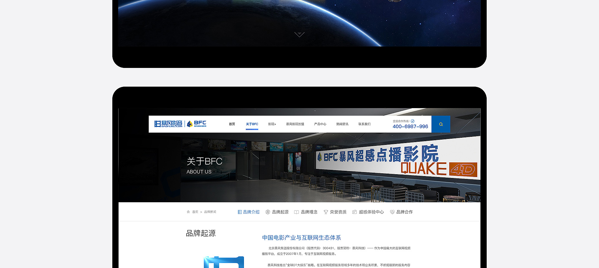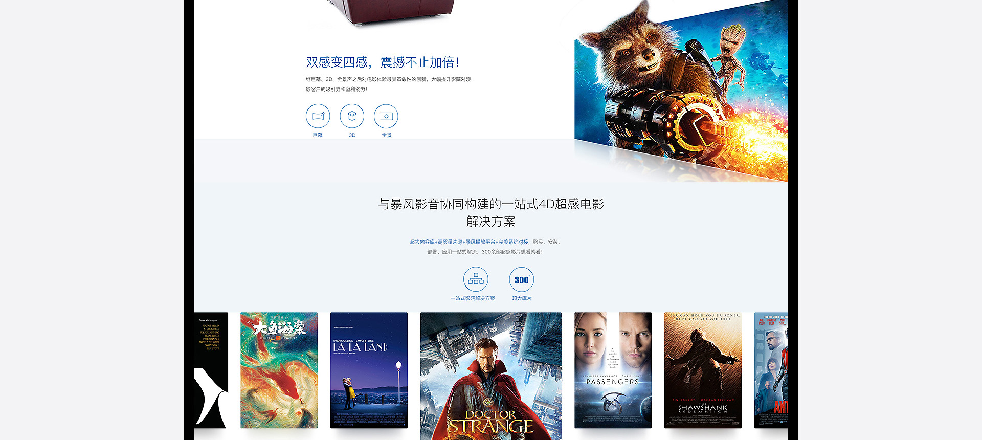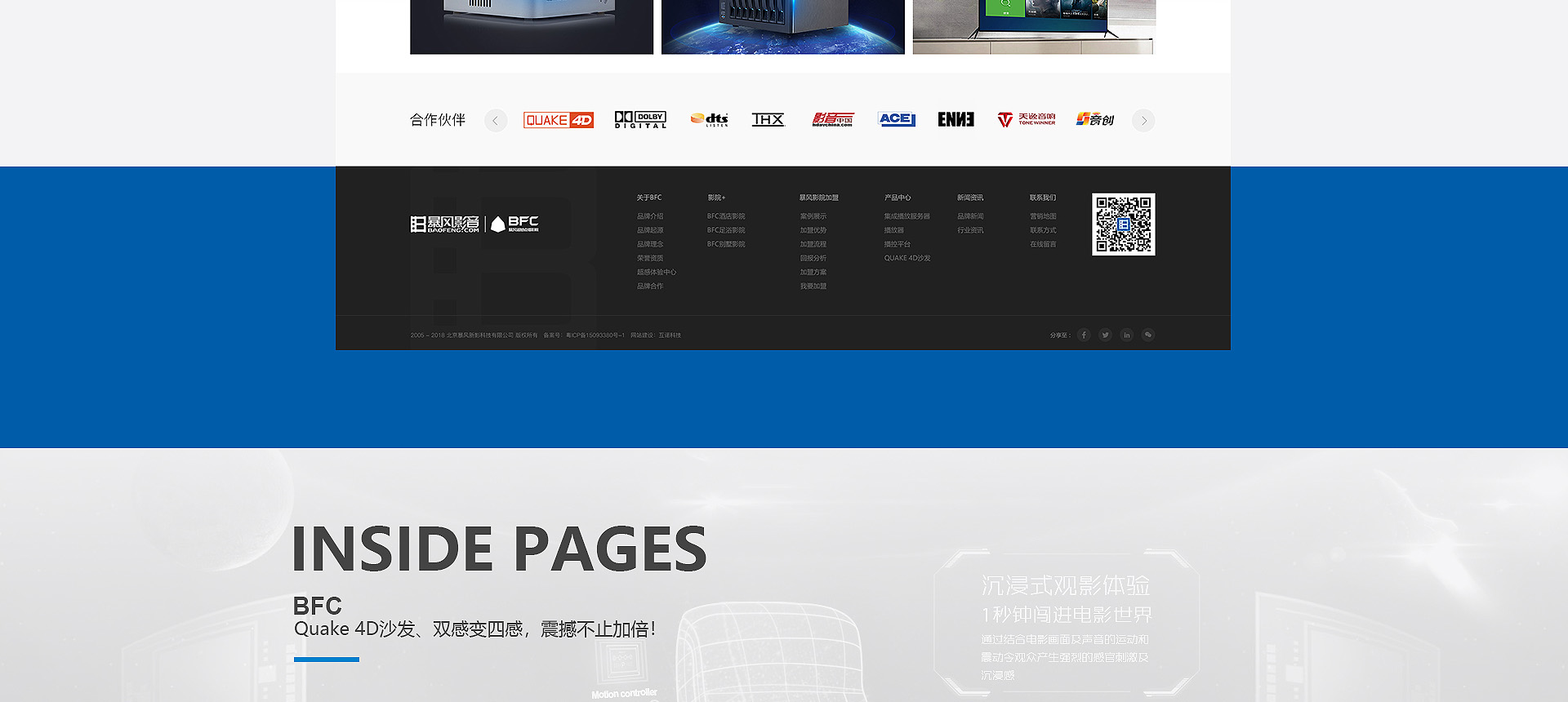 依托暴風(fēng)科技品牌、強(qiáng)大版權(quán)儲(chǔ)備和三億線上觀影用戶(hù),BFC暴風(fēng)超感影院是面向追求極致感官體驗(yàn)的觀影人群推出的高端品牌。BFC暴風(fēng)超感影院以全廳杜比全景聲音響、專(zhuān)業(yè)聲學(xué)設(shè)計(jì)、高亮3D投影和QUAKE超感沙發(fā)等獨(dú)家研發(fā)的產(chǎn)品為核心特色,獲得更舒適、更震撼觀影體驗(yàn)的極致享受的視聽(tīng)服務(wù)。 BFC暴風(fēng)超感影院秉承“通過(guò)...