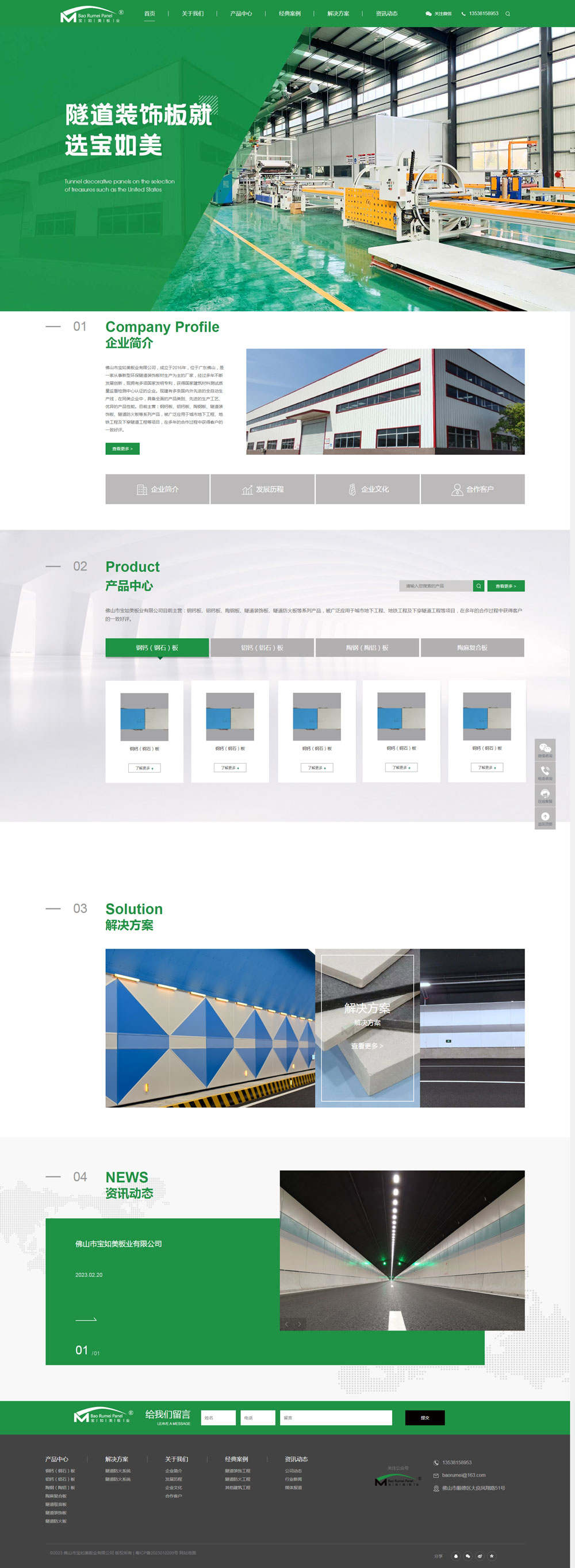 佛山市寶如美板業有限公司,成立于2016年,位于廣東佛山,是一家從事新型環保隧道裝飾板材生產為主的廠家,經過多年不斷發展創新,現擁有多項國家發明專利,獲得國家建筑材料測試質量監督檢測中心認證的企業。現建有多條國內外先進的全自動生產線,在同類企業中,具備全面的產品類別、先進的生產工藝、優異的產品性能。目前主營:鋼鈣板、鋁鈣板、陶鋼板、隧道裝飾板、隧道防火板等系列產品,被廣泛應用于城市地下工程、地鐵工程及下穿隧道工程等項目,在多年的合作過程中獲得客戶的一致好評。