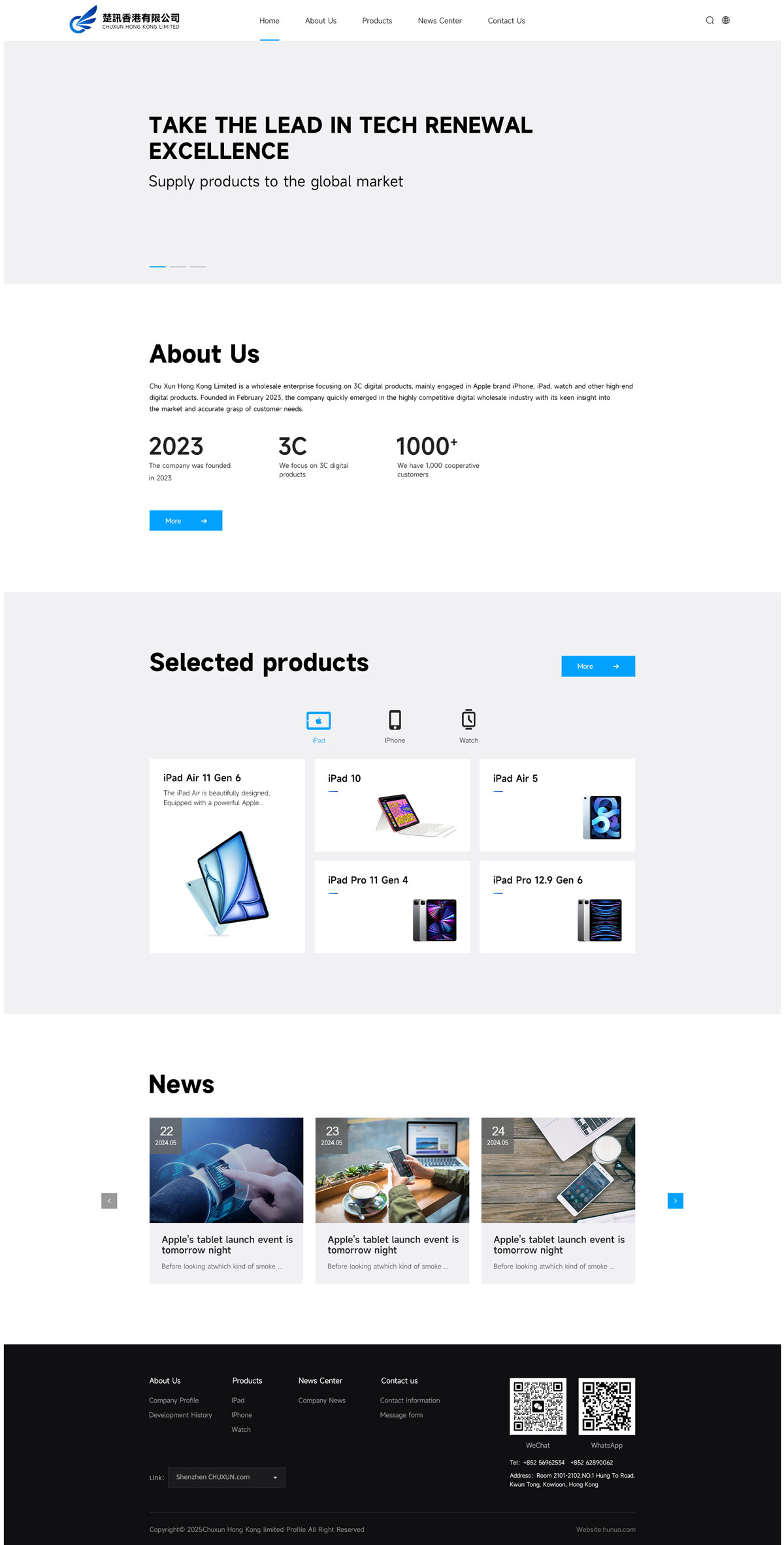 深圳市楚訊實業發展有限公司專門從事認證的預認證的預先二手資金,并翻新了高質量的蘋果產品以及全新設備的零售和批發。致力于為客戶提供出色、穩定和工廠級的產品體驗。總部位于香港,深圳有一個分支,致力于仔細選擇符合 Apple Inc. 嚴格質量標準的設備。所有產品都會進行全面的質量檢查,以確保用戶獲得高效可靠的性能。維護 “首先,服務最初的質量” 原則,致力于通過分配高質量設備,減少電子廢物并積極促進綠色回收和可持續發展,以擴展電子產品的生命周期。