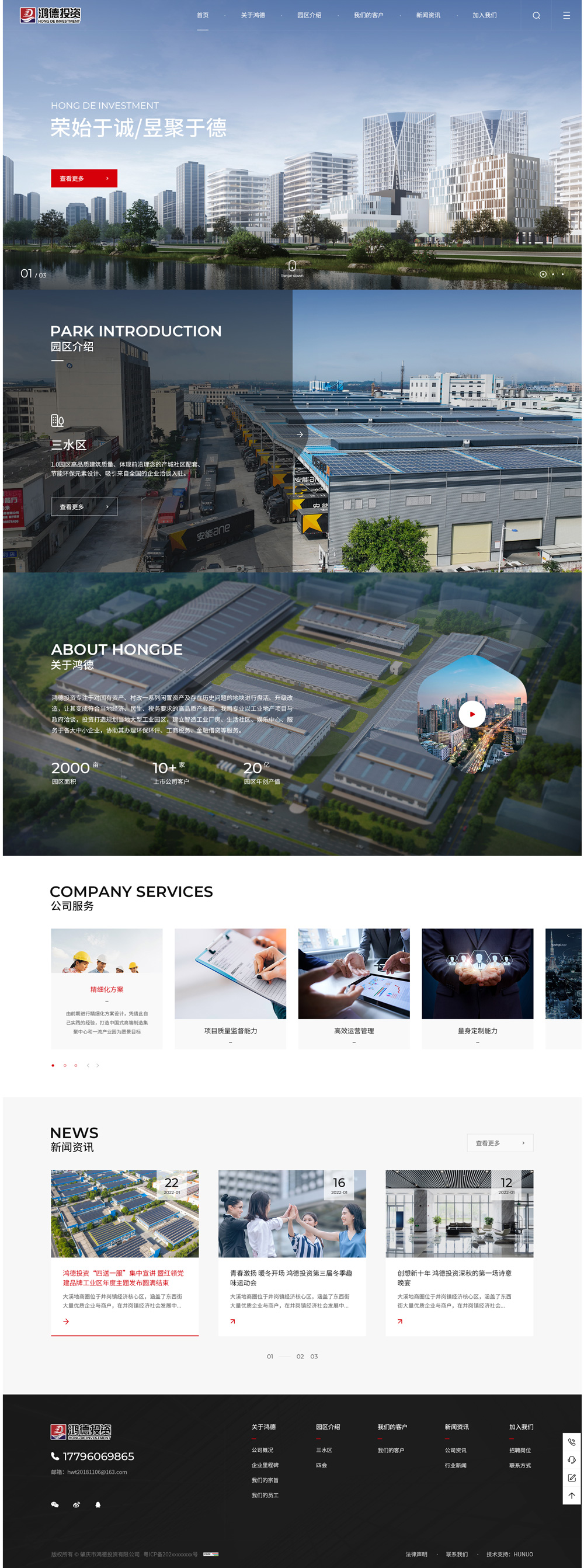 鴻德投資有限公司(簡稱“鴻德”)。主要業務范圍:產業定位規劃、園區代理招商、園區托管運營、工業園區互聯網應用。致力于對國有資產、村改一系列閑置資產及存在歷史問題的地塊進行盤活、升級改造,讓其變成符合當地經濟、民生、稅務要求的高品質產業園;為企業、工業園提供產業研究咨詢、工業地產開發可行性規劃、商業計...