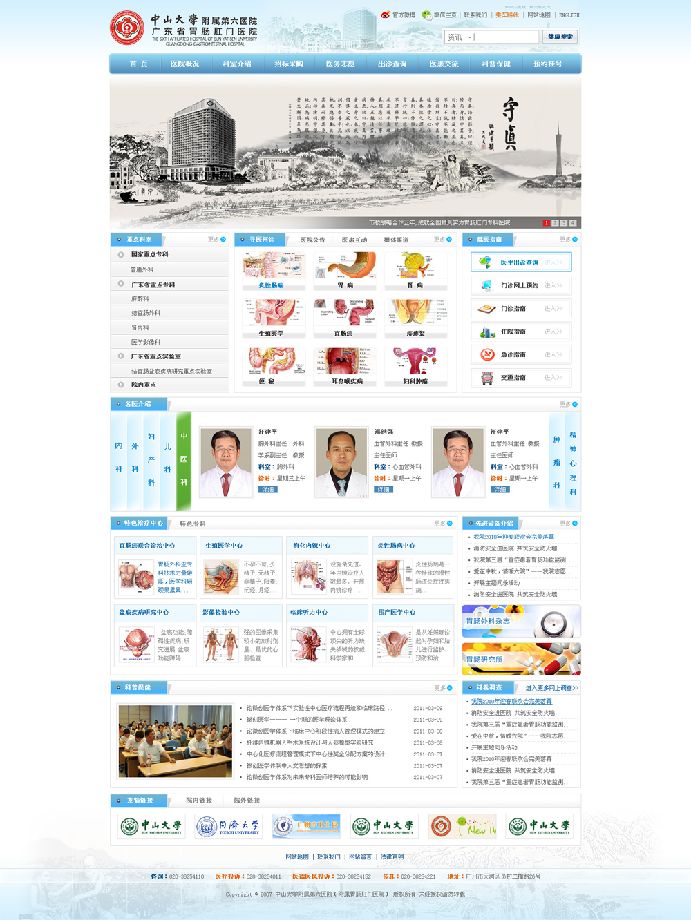 中山大學(xué)附屬第六醫(yī)院·廣東省胃腸肛門醫(yī)院(簡稱中山六院),是一所集醫(yī)療、教學(xué)、科研、預(yù)防和康復(fù)保健等為一體的三級甲等綜合性醫(yī)院,醫(yī)院為中山大學(xué)八家直屬附屬醫(yī)院之一,擁有兩個院區(qū)(員村院本部和瘦狗嶺北院區(qū)),編制床位1800張,開放床位1300張。是廣東省、廣州市公費醫(yī)療定點醫(yī)院;還是廣州市、深圳市、東莞市、珠海市、佛山市、惠州市、江門市等省內(nèi)18個地級市的醫(yī)療保險定點醫(yī)院。