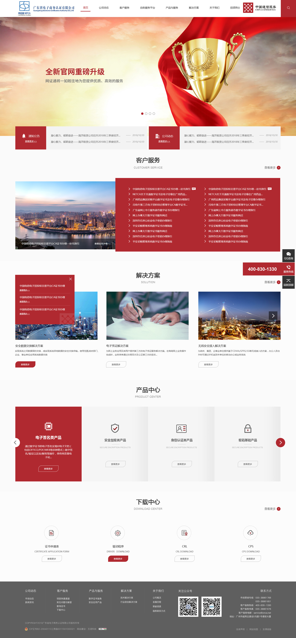 廣東省電子商務認證有限公司(以下簡稱"網證通NETCA")是中國通信服務股份有限公司(原中國電信實業集團)全資下屬國有企業,是依據《中華人民共和國電子簽名法》及《電子認證服務管理辦法》首批通過國家認定的合法第三方電子認證服務機構,獲得國家工信部頒發的《電子認證服務許可證》(許可證編號:ECP440104120006)和國...