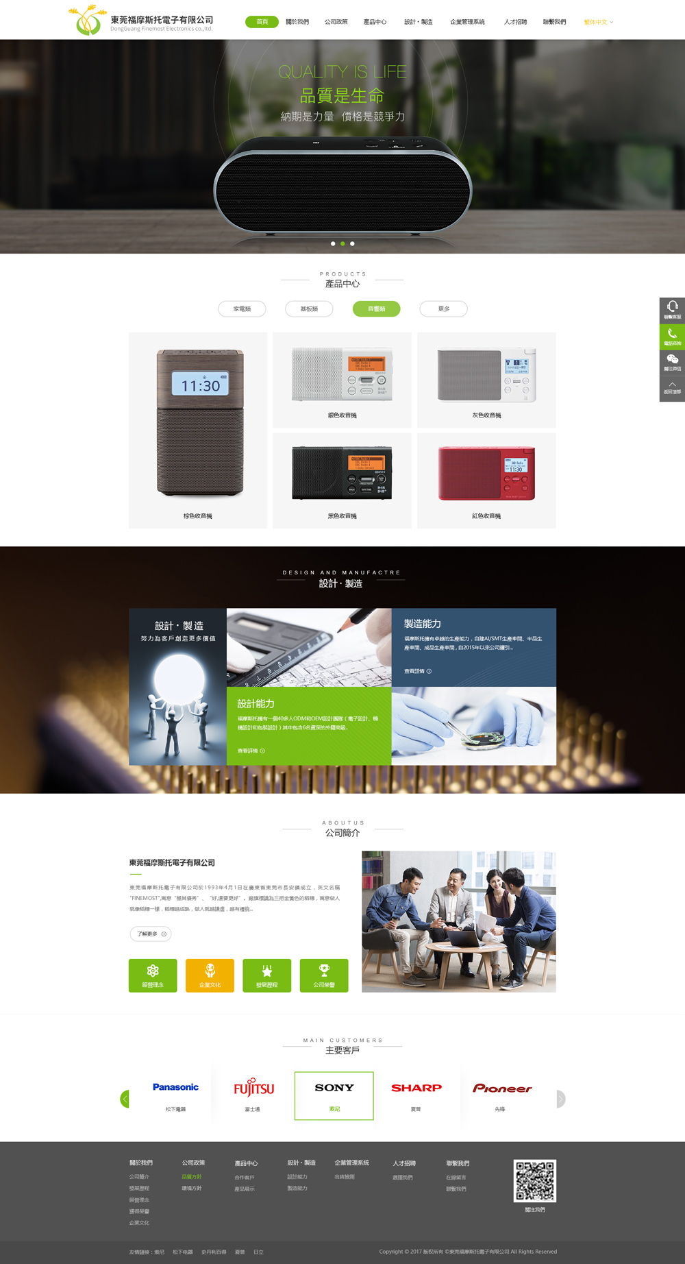 東莞福摩斯托電子有限公司于1993年4月1日在廣東省東莞市長(zhǎng)安鎮(zhèn)成立,英文名稱“FINEMOST”,寓意“極其優(yōu)秀”、“好,還要更好”。我公司主要為COMTRAD(港卓)、CYBERNET、FUJITSU GENERAL(富士通將軍)、鴻海科技集團(tuán)、HITACHI(日立)、PANASONIC(松下)、PIONEER(先鋒)、SONY(索尼)、SHARP(夏普)、Stanley Black & Decker(史丹利百得)等國(guó)際知名公司生產(chǎn)制造音響、收音機(jī)、多媒體喇叭、藍(lán)牙音箱、空氣清凈機(jī)、空調(diào)空清基板、洗衣機(jī)基板、LED照明燈、醫(yī)療專用平板計(jì)算機(jī)、工業(yè)電腦等產(chǎn)品,除生產(chǎn)客戶的產(chǎn)品以外,還積極開發(fā)自己的產(chǎn)品,創(chuàng)建自己的品牌。