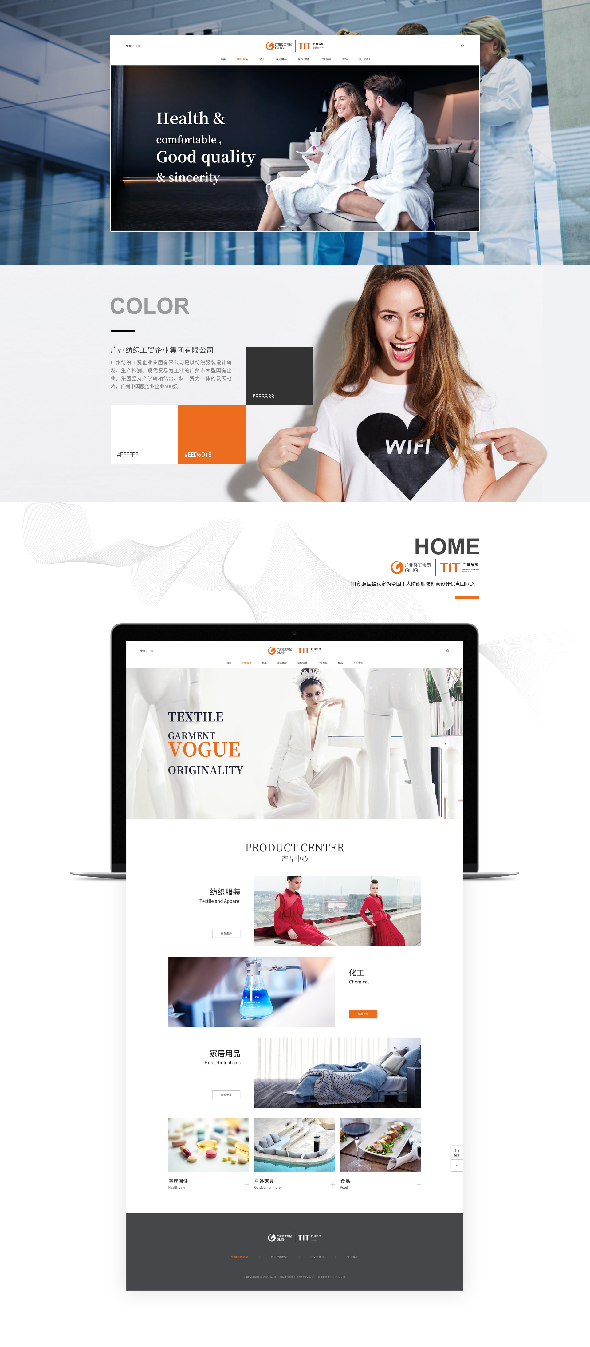 廣州紡織工貿企業集團有限公司是以紡織服裝設計研發、生產檢測、現代貿易為主業的廣州市大型國有企業。集團堅持產學研相結合、科工貿為一體的發展戰略,位列中國服務業企業500強、廣東省服務業百強企業。集團TIT品牌榮獲廣東省優秀自主品牌稱號,TIT創意園被認定為全國十大紡織服裝創意設計試點園區之一。