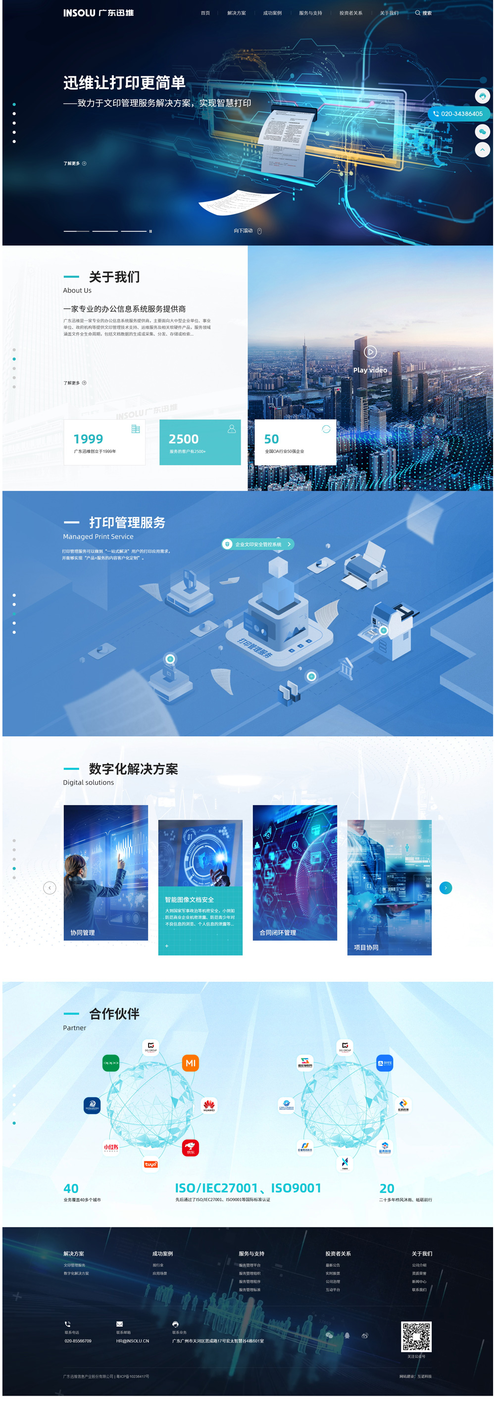 廣東迅維是一家專業的辦公信息系統服務提供商,主要面向大中型企業單位、事業單位、政府機構等提供文印管理技術支持、運維服務及相關軟硬件產品,服務領域涵蓋文件全生命周期,包括文檔數據的生成或采集、分發、存儲或檢索、流轉、信息管理與共享、輸出等業務流程,以滿足目標客戶對文檔數據安全管理、效率協同管理、成本管理等管理需求,同時提供后續咨詢和服務。