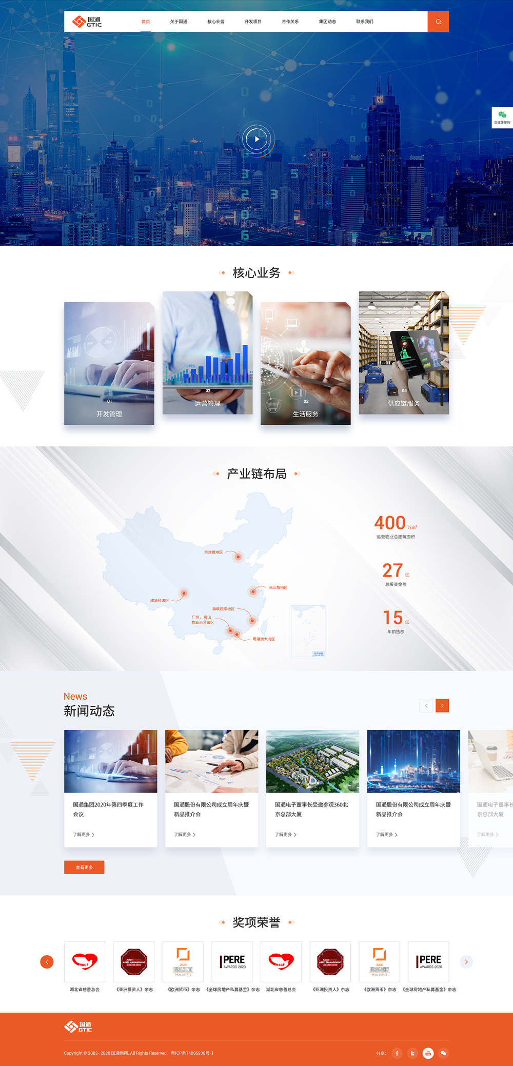 國通集團(tuán)自2004年成立,現(xiàn)成為以產(chǎn)業(yè)園投資開發(fā)、建設(shè)運(yùn)營為主營業(yè)務(wù)的大型綜合性企業(yè)集團(tuán)。業(yè)務(wù)類型涵蓋物流地產(chǎn)、專業(yè)交易市場、超低溫冷鏈、食品產(chǎn)業(yè)、商業(yè)住宅等領(lǐng)域,并提供物業(yè)服務(wù)、智慧膳食、供應(yīng)鏈管理等增值服務(wù)。