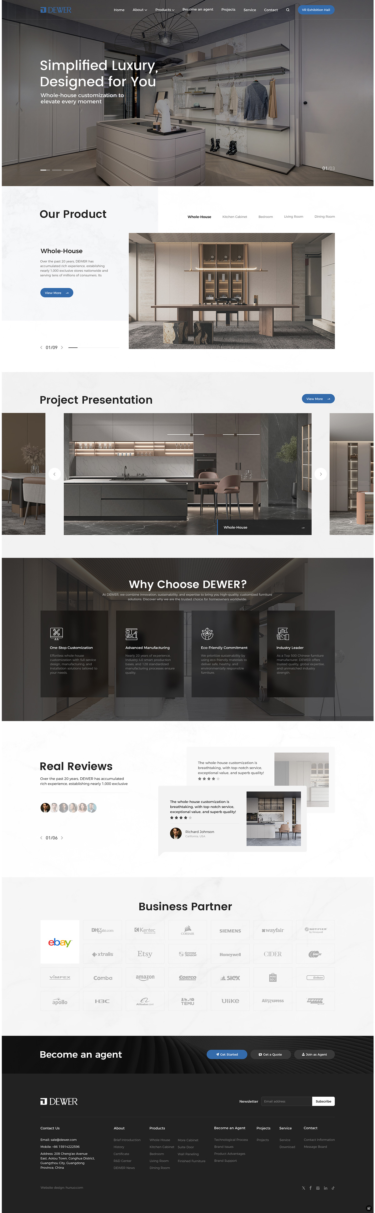 雙方攜手后,互諾科技針對德維爾家具的品牌特色與市場定位,量身定制了一套全面的數字化解決方案。在網站建設方面,打造了兼具美觀性與實用性的企業官網,通過精美的頁面設計與流暢的用戶體驗,全方位展示德維爾家具的產品優勢、設計理念以及品牌文化;在 SEO 網站優化領域,運用專業的技術手段,讓更多潛在客戶能夠順利找到企業網站。