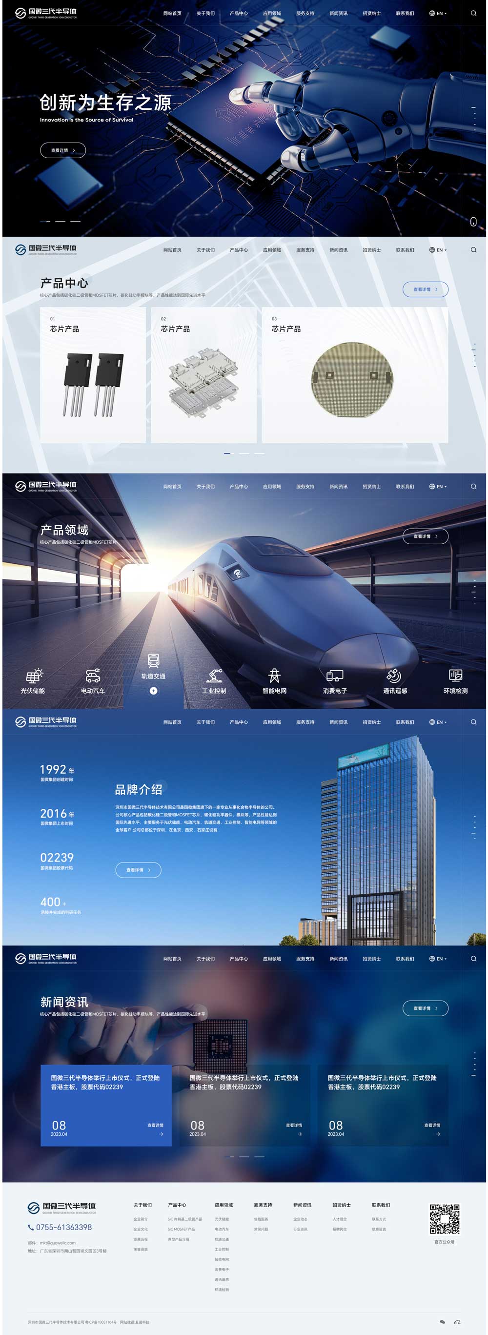 深圳市國微三代半導體技術有限公司是國微集團旗下的一家專業從事化合物半導體的公司。公司核心產品包括碳化硅二極管和MOSFET芯片,碳化硅功率器件、模塊等,產品性能達到國際先進水平,主要服務于光伏儲能、電動汽車、軌道交通、工業控制、智能電網等領域的全球客戶。