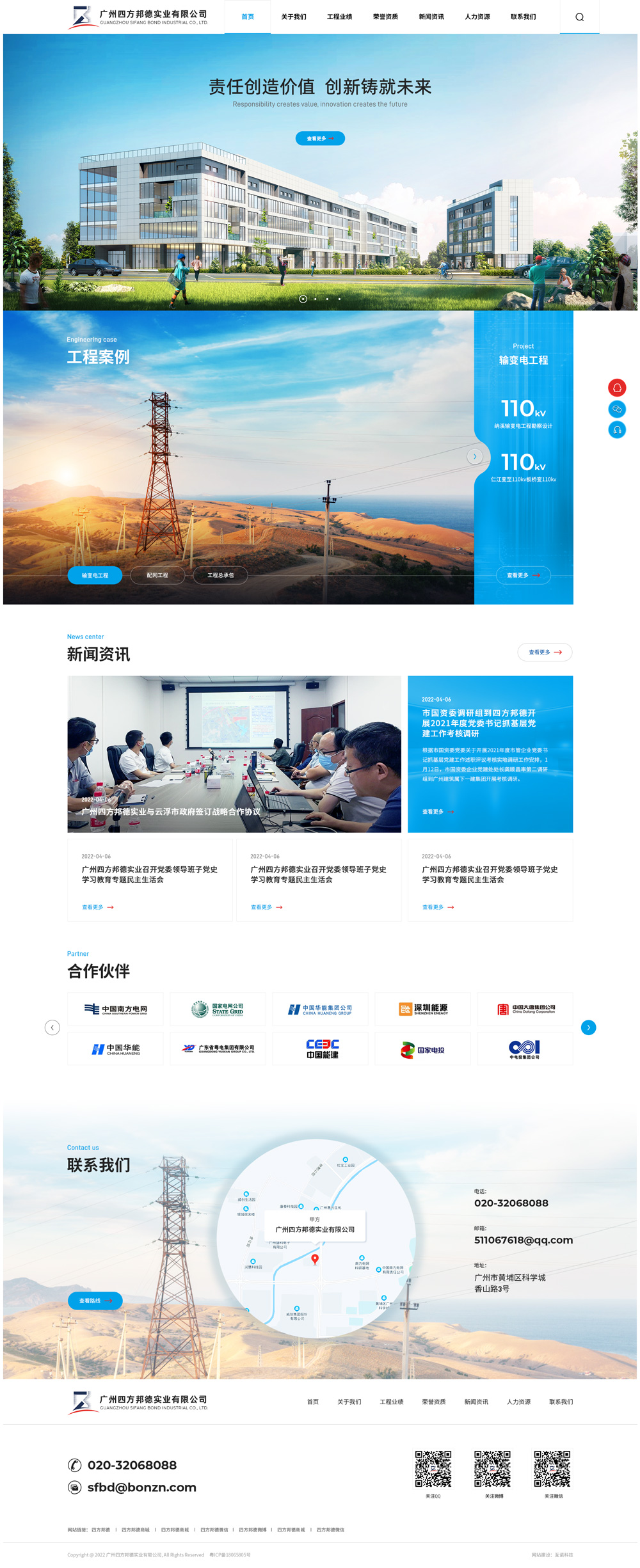 廣州四方邦德實業有限公司是一家在電力行業有十多年歷史的綜合性電力公司,注冊資金5000萬元人民幣,坐落于廣州科學城,擁有自身產權100多畝的辦公工業園地,是廣東省高新技術企業,具有電力行業(送、變電工程)專業設計乙級資質、工程咨詢單位資格證書(火電專業)丙級資質,能承擔220kV及以下電壓等級送、變電工程的勘察設計、咨詢工作。