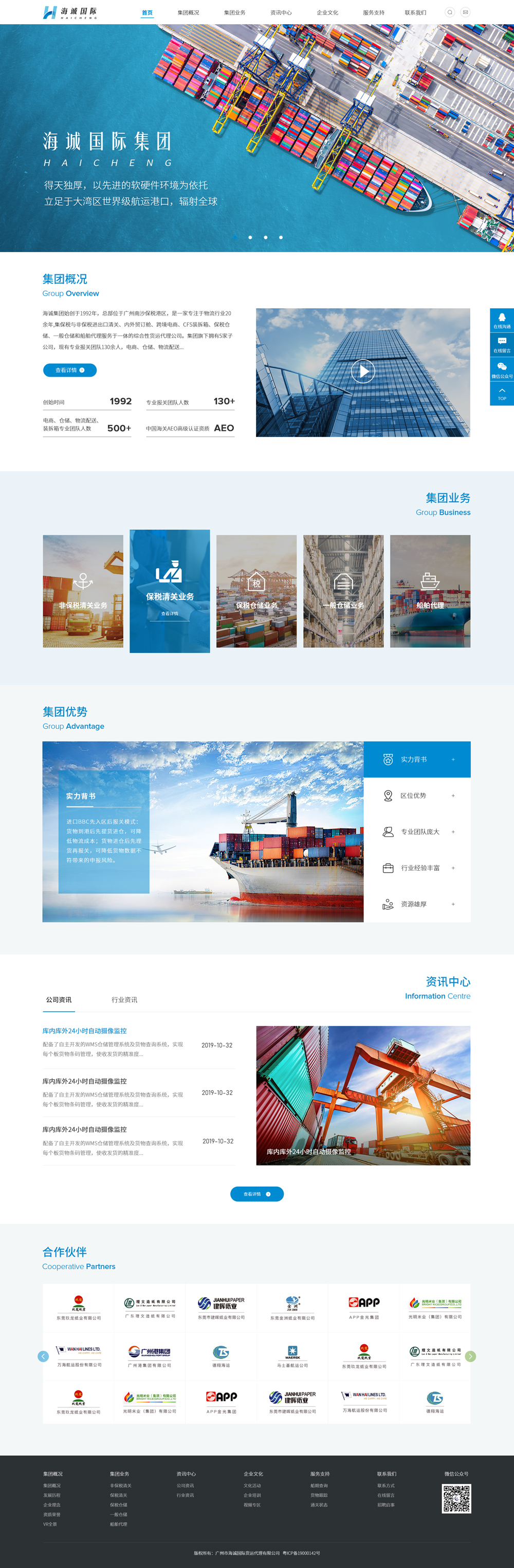 海誠集團始創(chuàng)于1992年,總部位于廣州南沙保稅港區(qū),是一家專注于物流行業(yè)20余年,集保稅與非保稅進出口清關(guān)、內(nèi)外貿(mào)訂艙、跨境電商、CFS裝拆箱、保稅倉儲、一般倉儲和船舶代理服務(wù)于一體的綜合性貨運代理公司。集團旗下?lián)碛?家子公司,現(xiàn)有專業(yè)報關(guān)團隊130余人,電商、倉儲、物流配送、裝拆箱專業(yè)團隊約500余人。