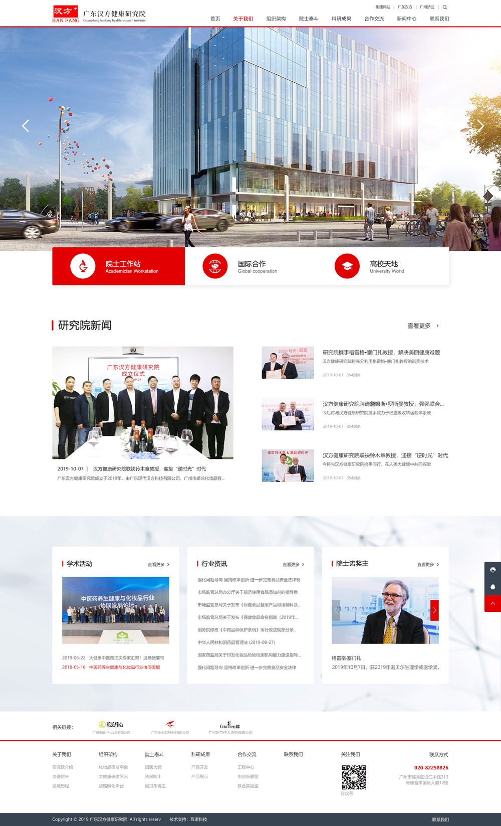廣東漢方健康研究( 英文名稱:Guangdong hanfang health research institute )于 2019 年10月正式成立,本院是由廣東現代漢方科技有限公司、廣州市嬌蘭化妝品有限公司共同出資舉辦的一家聚焦美麗大健康的研究型專業平臺。本研究院產學研一體化,聘請中國科學院資深院士陳可冀院士為名譽院長,致力于開展前沿科技研究,與國...