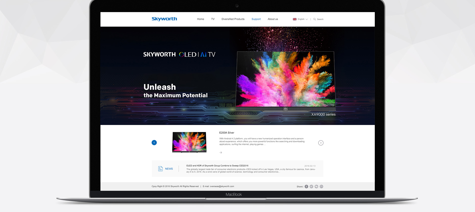 Skyworth was estabblished in 1988, with the head office located within Shenzhen High Tech Industrial Park which is honored as "China’s silicon valley", and has more than 40,000 employees. Skyworth is a large-scale high-tech corporation mainly engaged in the development and manufacturing of consumer...