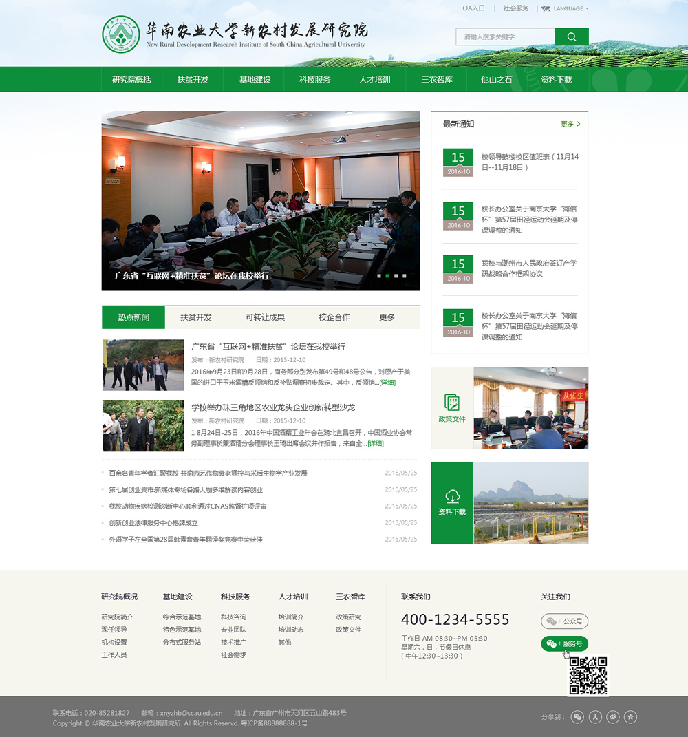 經廣東省人民政府推薦,華南農業大學新農村發展研究院于2013年12月19日獲科技部和教育部聯合批準成立,華南農業大學新農村發展研究院成為廣東省唯一的國家級新農村發展研究院,將助推動廣東現代農業發展、建設新型農村科技服務體系、構建新農村建設理論智庫、美麗鄉村規劃設計、培訓新型農業農村人才、打造“三農”信息服務平臺、提升大學生創新創業能力、積極應對公共危機與重大自然災害和“雙到”扶貧工作開展標志著華南農業大學服務社會、服務現代農業和新農村建設進入了一個新的歷史階段。