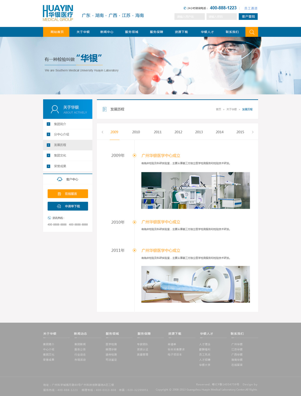 通年近年高速而穩(wěn)健的發(fā)展,公司服務(wù)網(wǎng)絡(luò)目前已覆蓋廣東全省,并立足廣東、面向全國(guó)、拓展國(guó)際,相繼成立南京華東中心、廣西分中心、湖南分中心、四川分中心、重慶分中心,在湖南、海南省、江西省、福建省、河南省、山東省等地建立了檢驗(yàn)服務(wù)網(wǎng)絡(luò),全面擴(kuò)展全國(guó)的醫(yī)療服務(wù)市場(chǎng)。2014年華銀與Labnet公司合作通過(guò)遠(yuǎn)程服務(wù)模式啟動(dòng)與吉爾吉斯斯坦、哈沙克斯坦、越南等國(guó)的合作,進(jìn)一步開(kāi)拓國(guó)際市場(chǎng)。公司未來(lái)的發(fā)展將持續(xù)以醫(yī)學(xué)診斷技術(shù)與服務(wù)為核心,為客戶提供全方位解決方案,成為健康、持續(xù)發(fā)展的世界一流醫(yī)療服務(wù)企業(yè)。