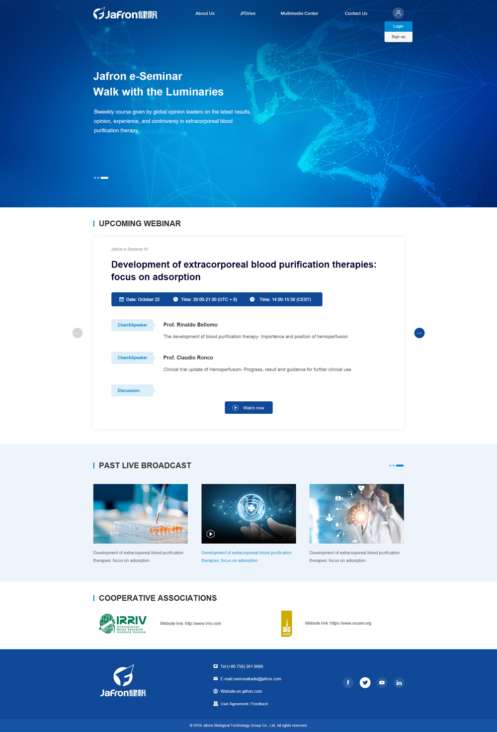 Jafron Biomedical Co., Ltd. was established in 1989. It is mainly engaged in R&D, production and marketing of biomaterials and medical devices. As an A-shared GEM listed corporation, Jafron is a leading enterprise in Chinese blood purification industry.