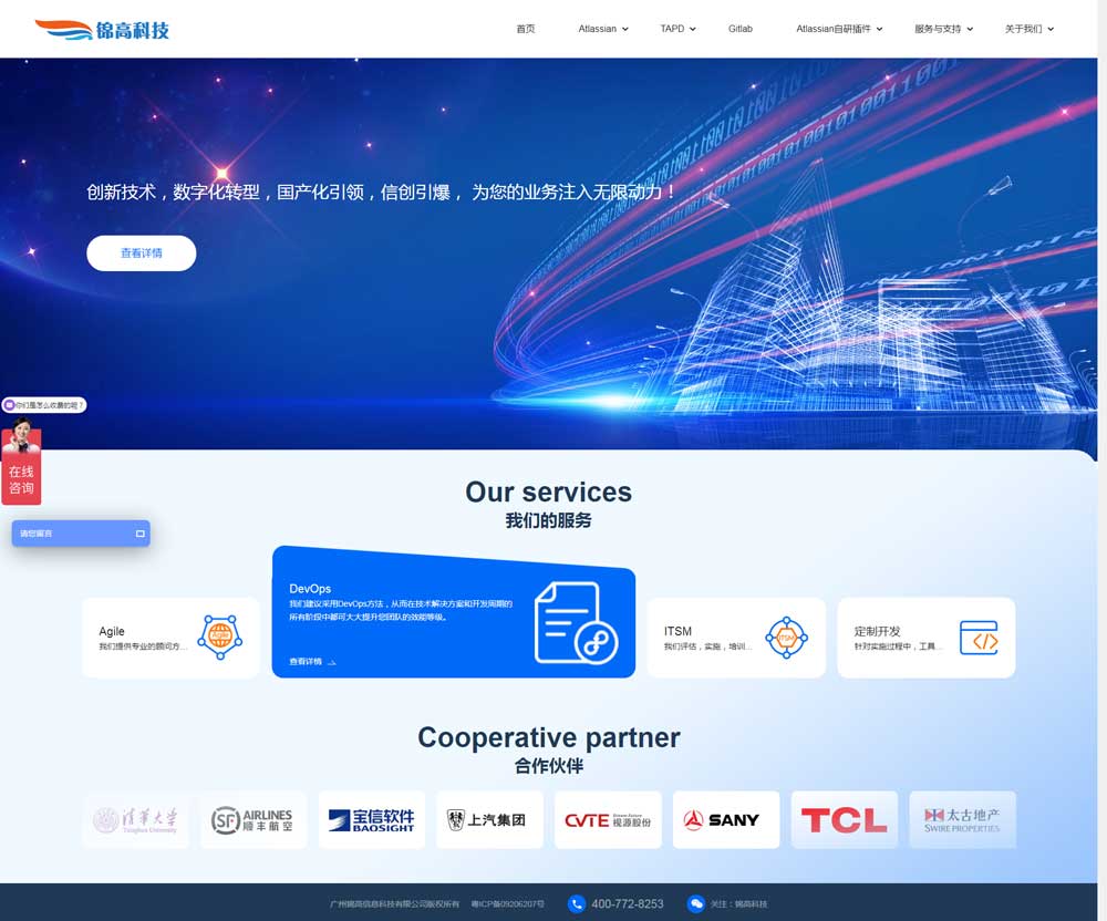 從2016開始,我司代理atlassian產品(如JIRA,confluence,DevOps系列等),先后為世界500強企業華為、中興、工商銀行,平安銀行,騰訊,美的,順豐等提供了軟件銷售及培訓服務,同時也為華為及中興努比亞,美的,平安銀行等客戶提供了二次開發服務,作為華南區唯一的atlassian產品服務商,我們也同時為其它行業的客戶提供atlassian的產品解決方案及DevOps解決方案。