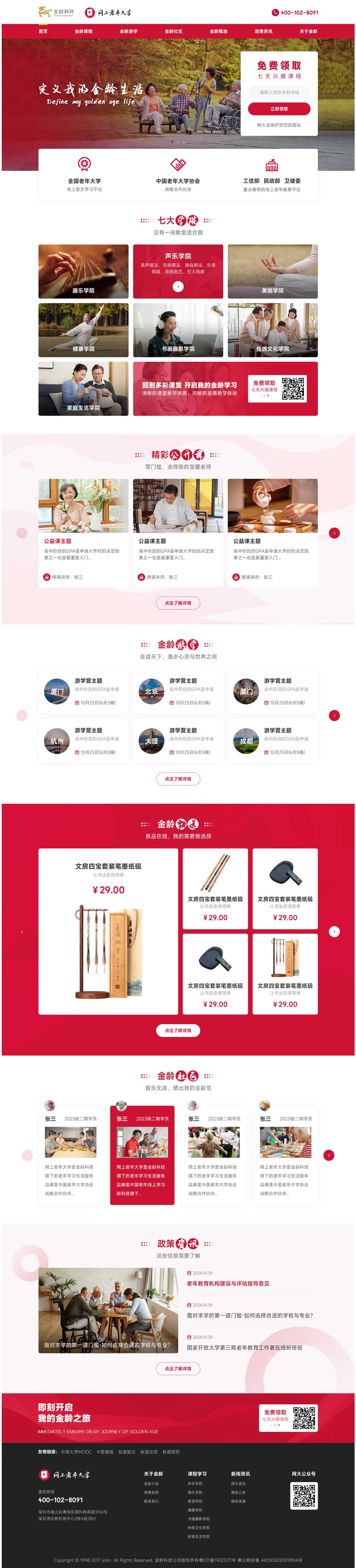 網上老年大學是金齡時代科技旗下的老年學習生活服務品牌,是中國老年大學協會戰略合作伙伴,全國老年大學官方線上學習平臺,是“工信部、民政部、衛健委”三部委聯合推薦的線上老年教育平臺。