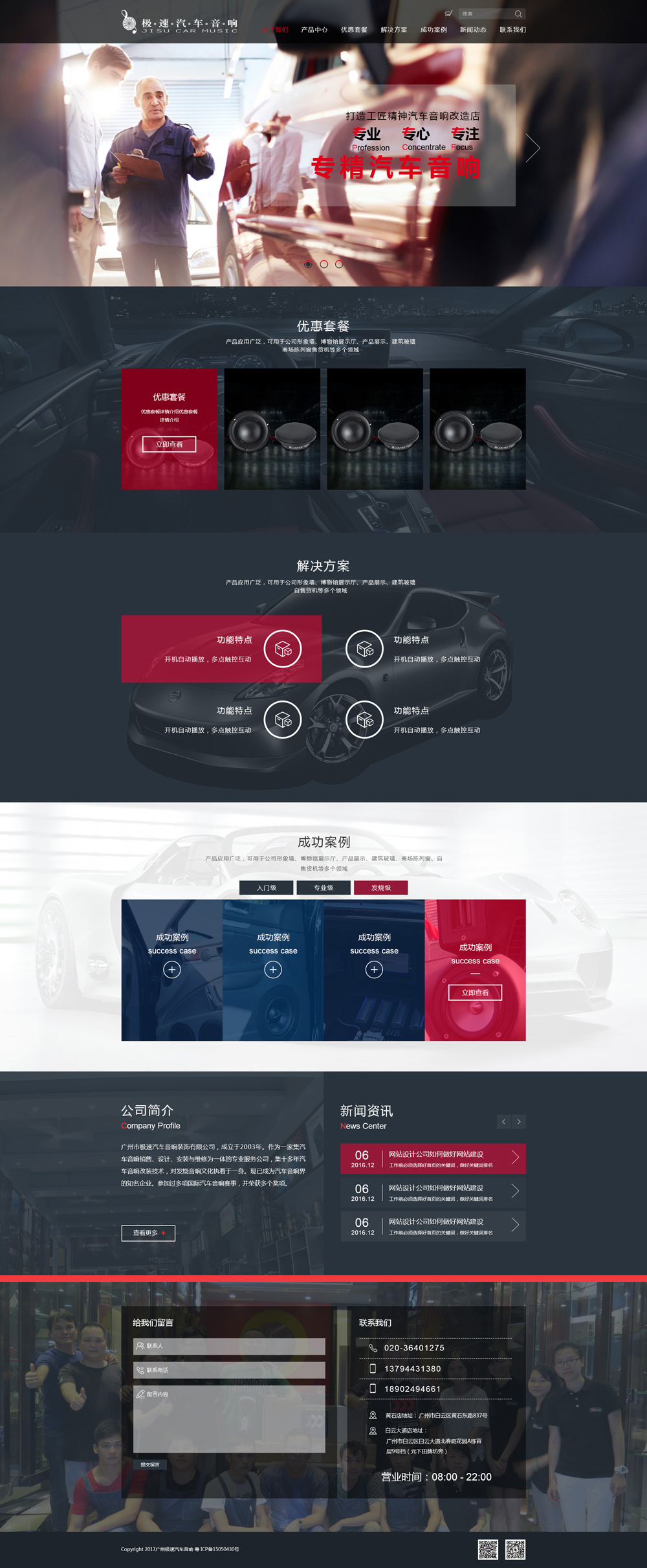 廣州市極速汽車音響裝飾有限公司,成立于2003年。是一家集汽車音響銷售、設(shè)計、安裝與維修于一體的專業(yè)公司,距今有十余年,對汽車音響改裝技術(shù)有豐富的經(jīng)驗和強大的技術(shù)支持、并對音響發(fā)燒文化有獨特的見解,并致力于該文化中不斷深入研究,現(xiàn)今極速已成為汽車音響界的知名企業(yè)。極速在相關(guān)領(lǐng)域中緊跟國際步伐,并與之加強...