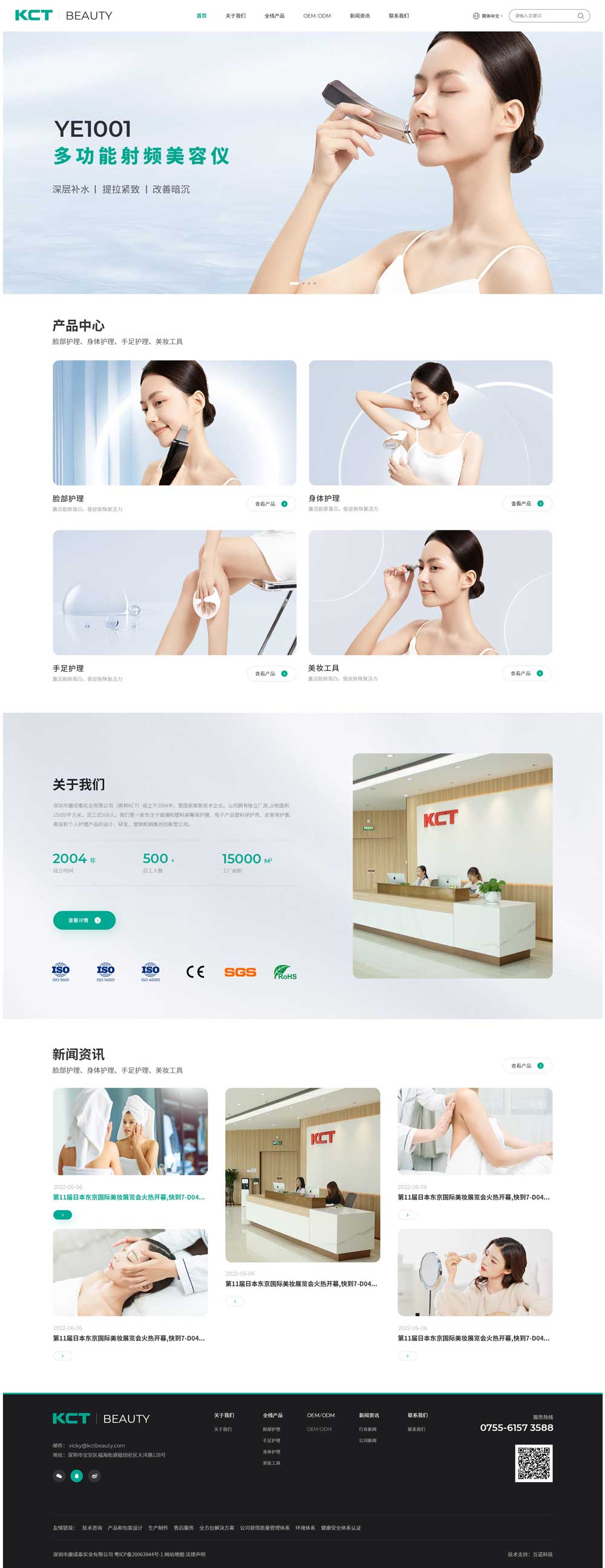 深圳市康成泰實業有限公司(簡稱KCT)成立于2004年,是國家高新技術企業。公司擁有獨立廠房,占地面積15000平方米,員工近500人。我們是一家專注美容、化妝工具和個人護理產品設計、研發、營銷和銷售的創新型公司。作為國家科技政策支持的高新技術企業,我們匯集了一支由20多名工程師組成的專業研發團隊。該團隊通過努力獲得了70多項自主專利。我們重視自主技術創新和保護知識產權。我們不斷開發和設計優秀的產品,超越客戶的期望。我們獲得了質量管理體系、環境體系、健康安全體系、反恐和企業社會責任審核等認證。我們為客戶提供從最初的產品概念到設計、原型生產和模具制造的一站式技術OEM&ODM服務。我們的使命是為客戶和消費者創造價值。我們愿與世界各地更多的人分享時尚、健康、美麗生活的快樂。